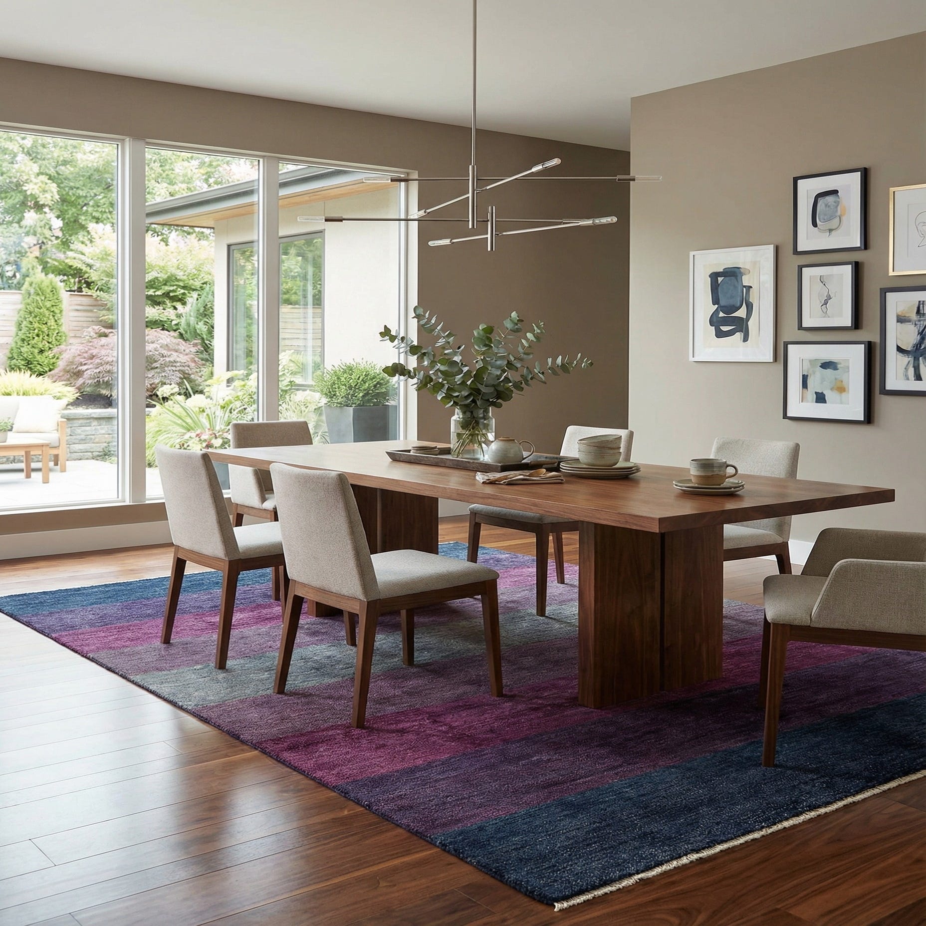 The design of this rug is well-suited for those wanting to introduce color to their home without overwhelming the space. Its gradient of hues would pair exceptionally well with both neutral-toned and richly colored furniture and decor. The plush texture of wool adds an element of warmth, ideal for living areas, studies, or bedrooms.