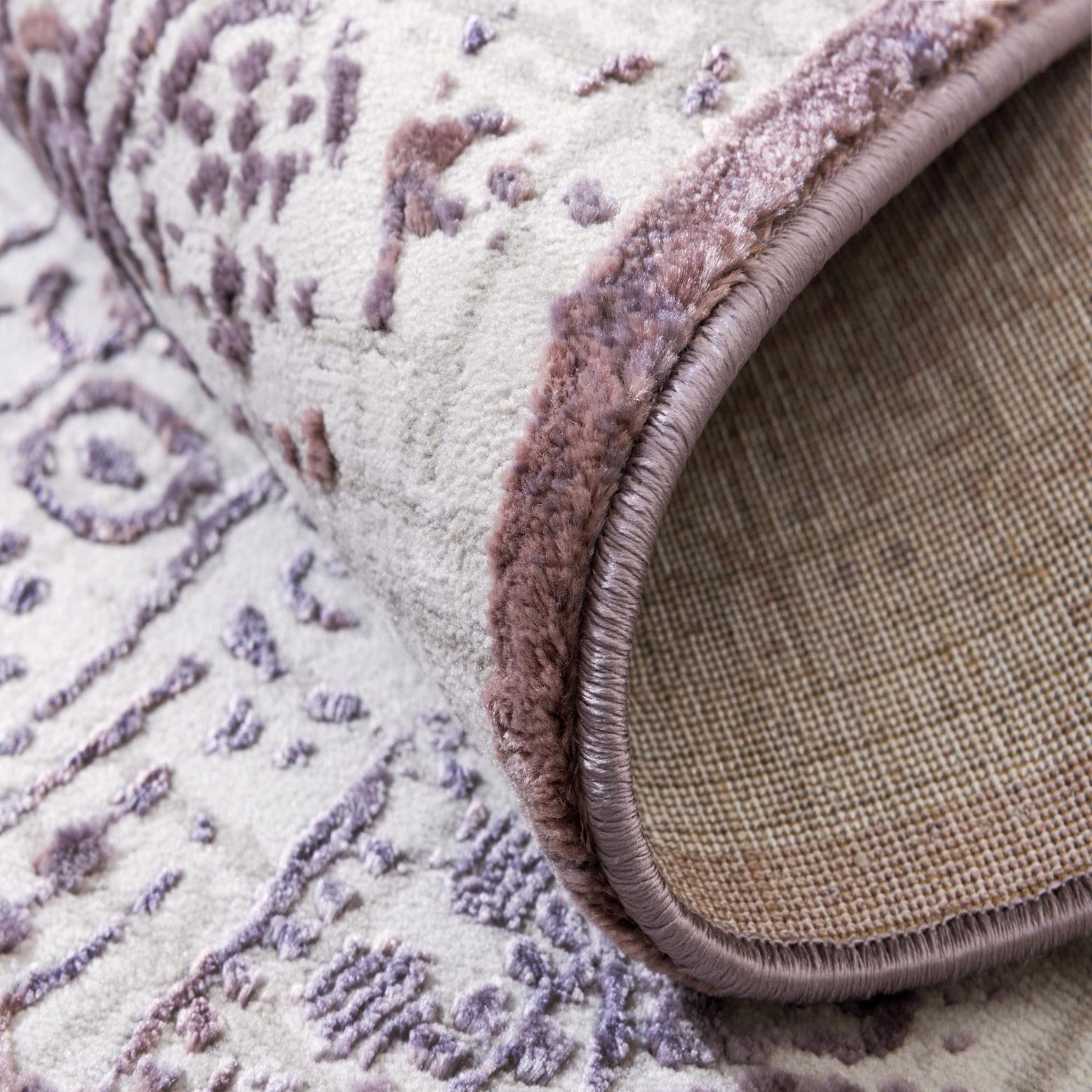 This runner works well in hallways and entryways or as a narrow accent beside a bed or sofa. It complements transitional and modern-traditional interiors, and pairs particularly nicely with light wood floors, ivory or gray upholstery, and warm metallic accents like brass or rose gold to pick up the light brown tones. Use it to introduce a soft violet accent in otherwise neutral rooms or to enhance a layered, feminine contemporary scheme with linen throws and textured cushions.