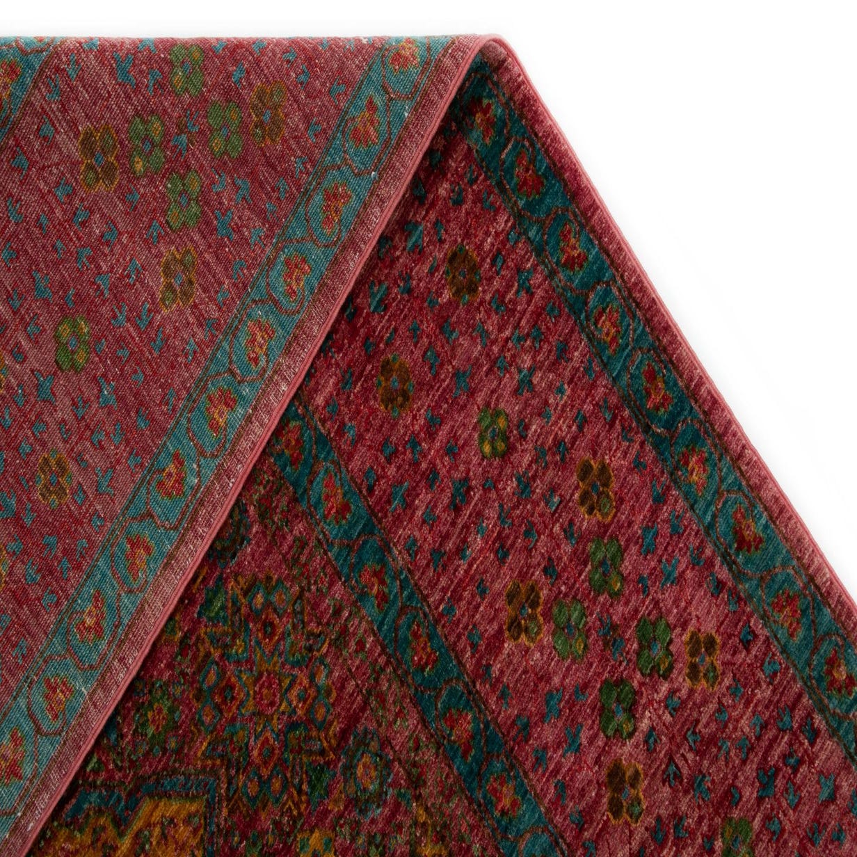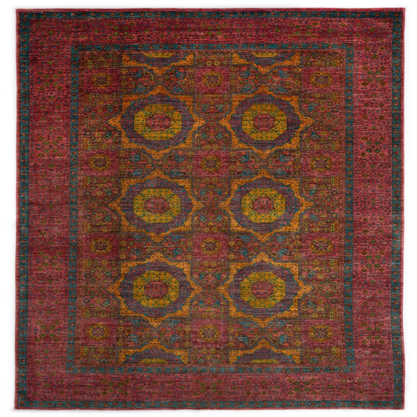 Primary color is Violet. Colors in this rug include: Violet, Violet, Yellow, Blue, Green, Red.