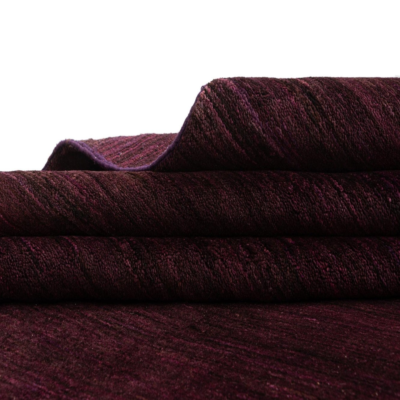 A rectangular 8x11 Juma Persian rug in a deep, rich purple hue, featuring a subtle striated texture.