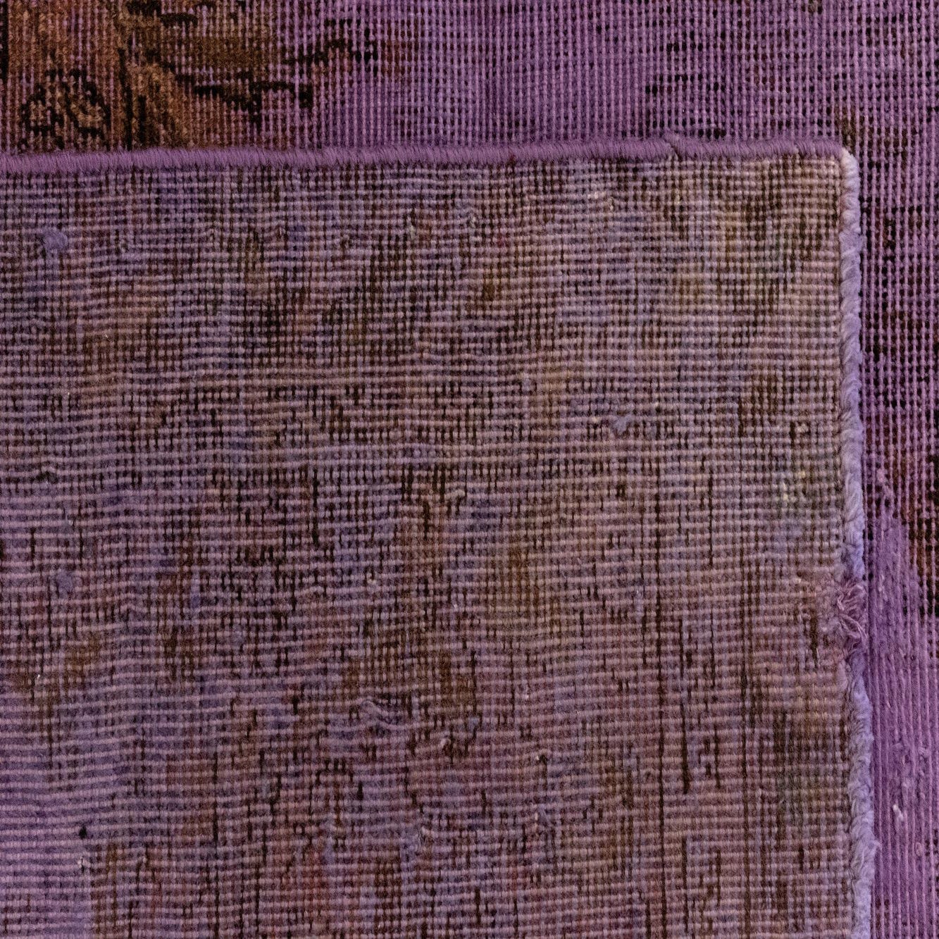 The rug features a distressed pattern, which suggests historical influence and adds character, ideal for those who appreciate a hint of antiquity in their living spaces. Its violet and brown color scheme provides a bold color contrast, yet maintains a sense of elegance and warmth.