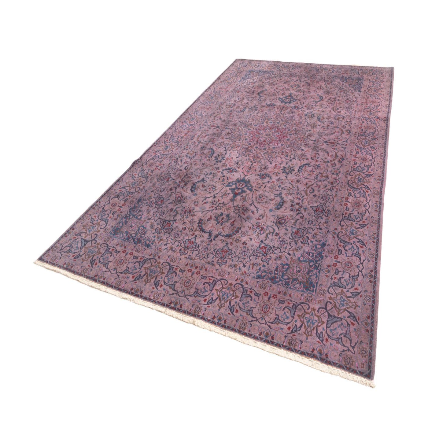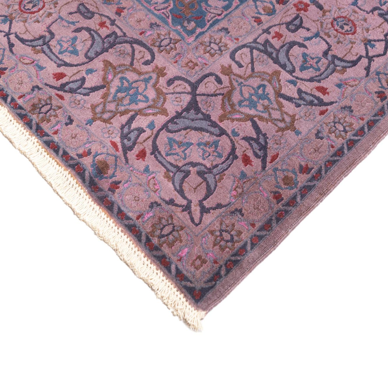 A 9x12 rectangular purple traditional wool rug featuring an intricate floral medallion pattern and ornate border.