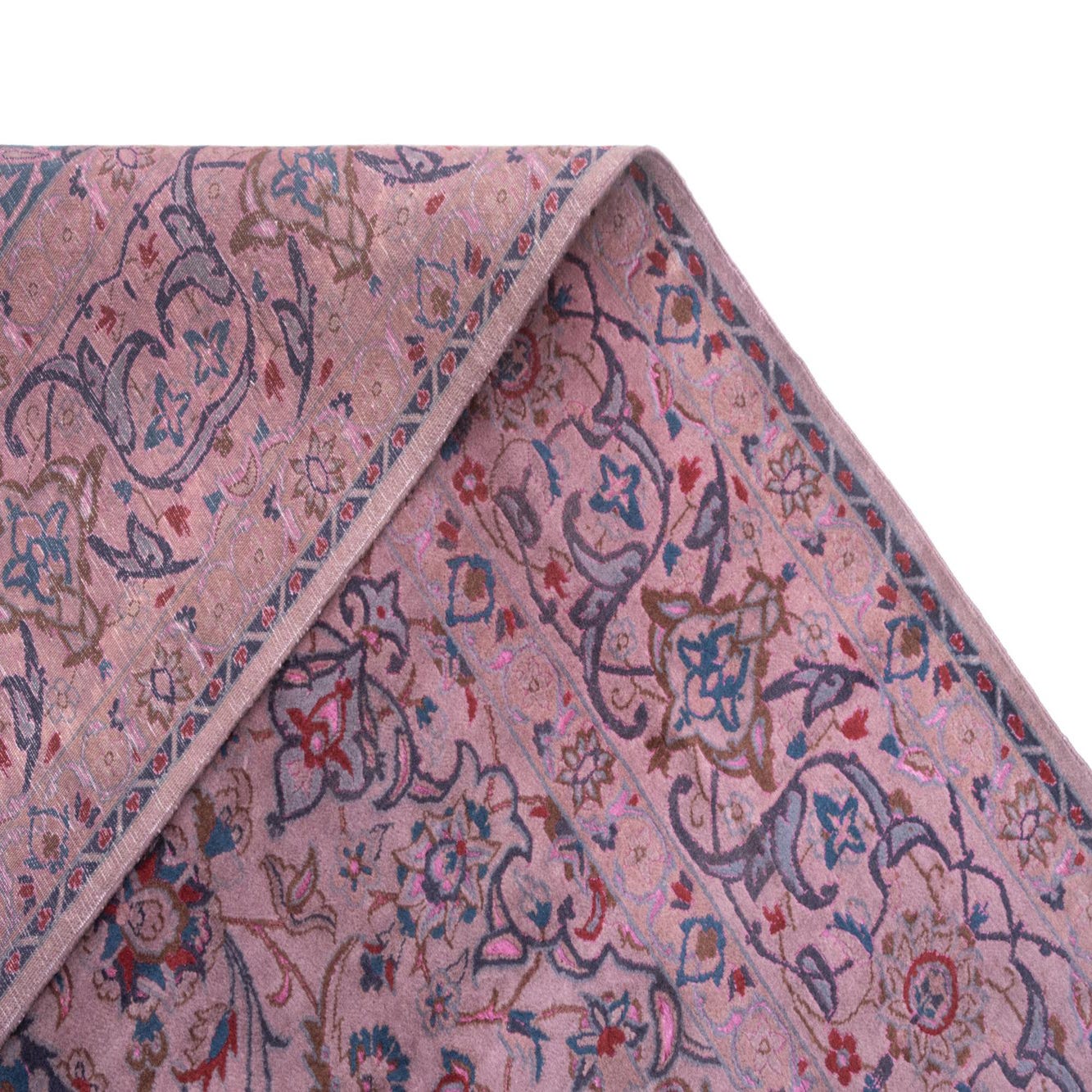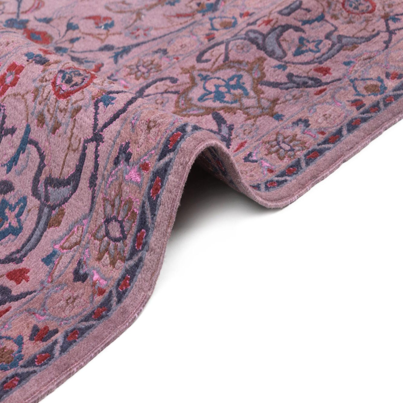 Primary color is Violet. Colors in this rug include: Violet, Blue, Red, Brown.