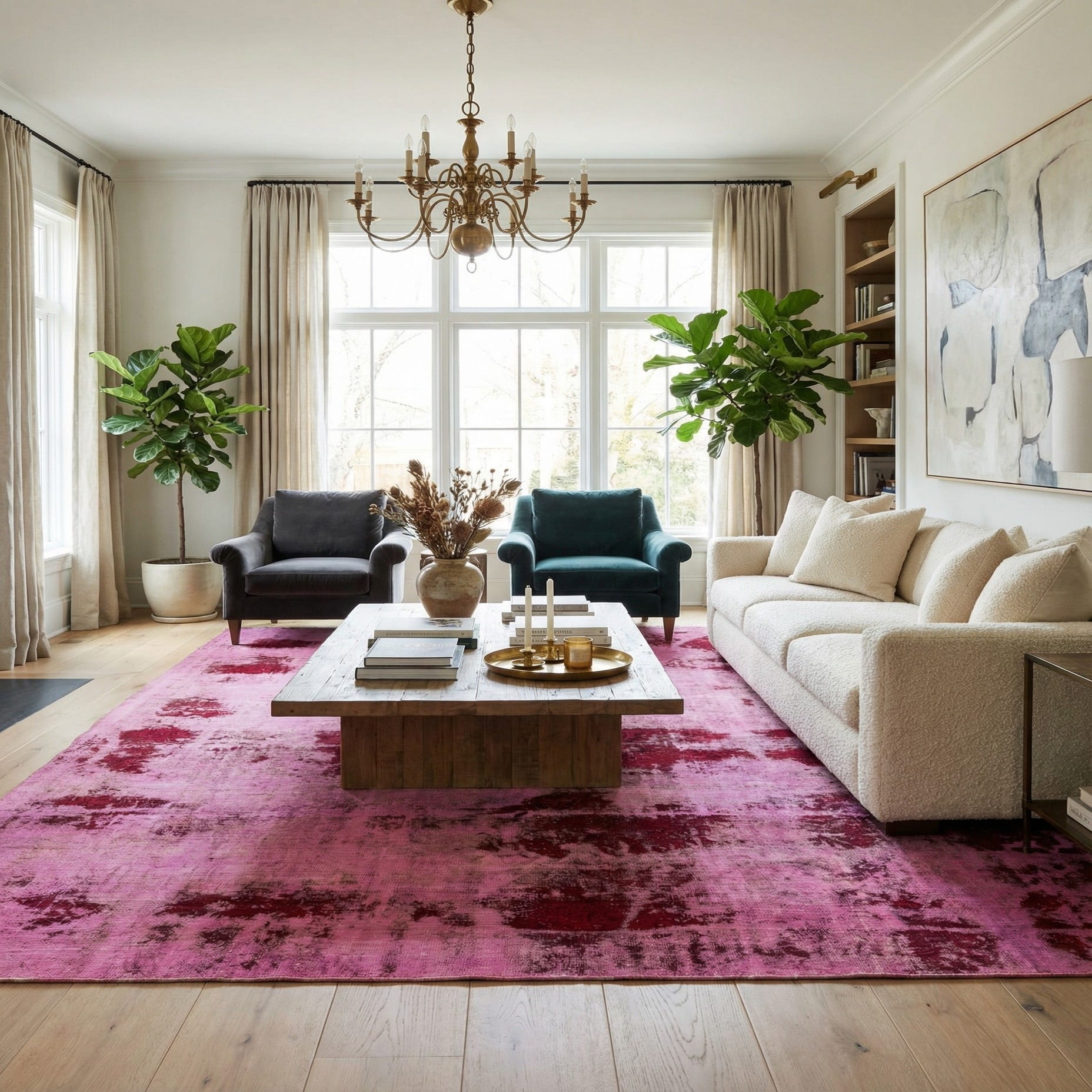 This rug would pair exceptionally well with interiors that aim to strike a balance between modern design elements and classic influences. It would fit seamlessly into a sophisticated living room, underpinning a seating area with its vibrant yet muted tones. In a minimalist setting, the rug's complex pattern can add depth and interest without overwhelming the space, while in a more eclectic aesthetic, it can harmonize with a mix of textures and period pieces. Its antique character also makes it an ideal choice for those who wish to imbue their home with a sense of history and craftsmanship.