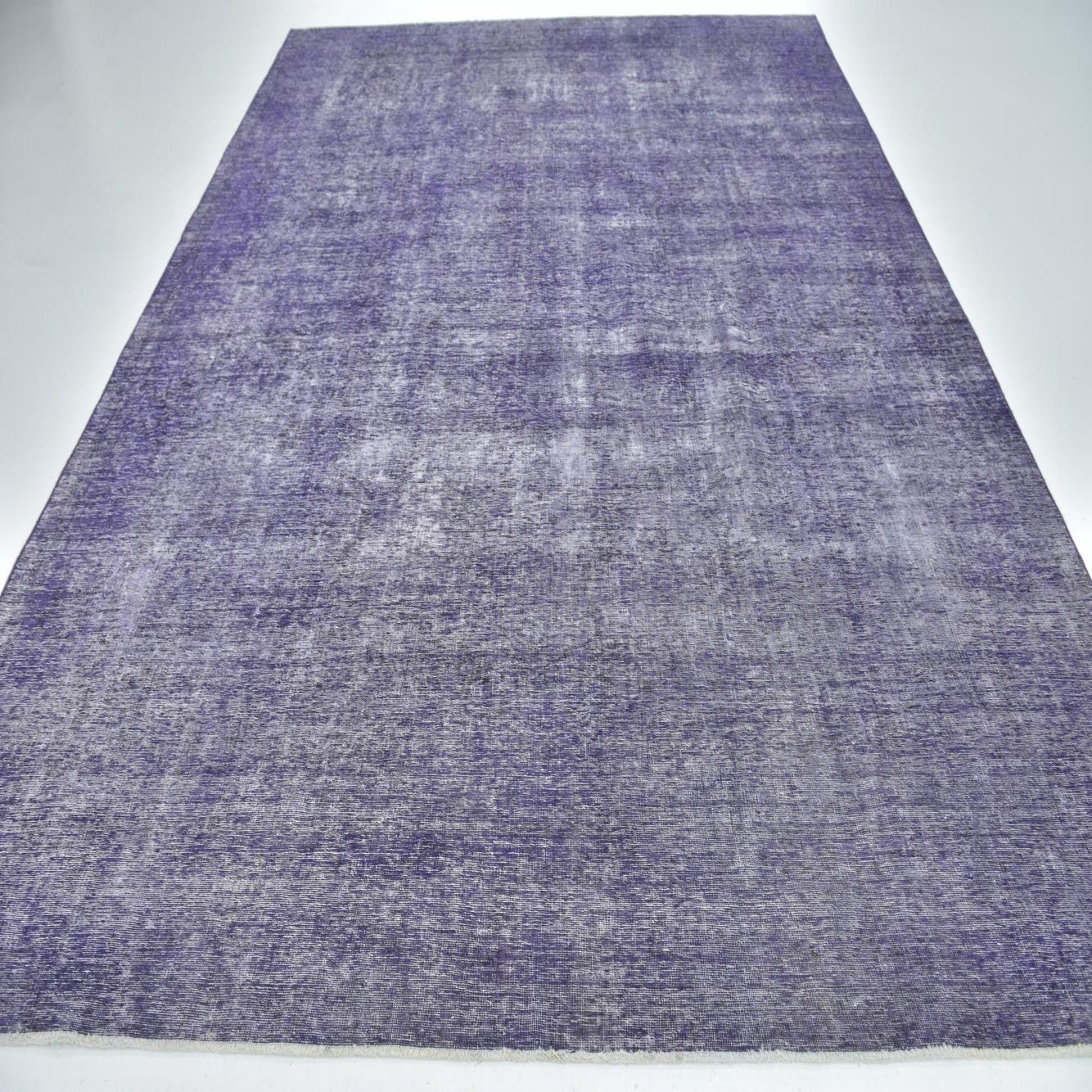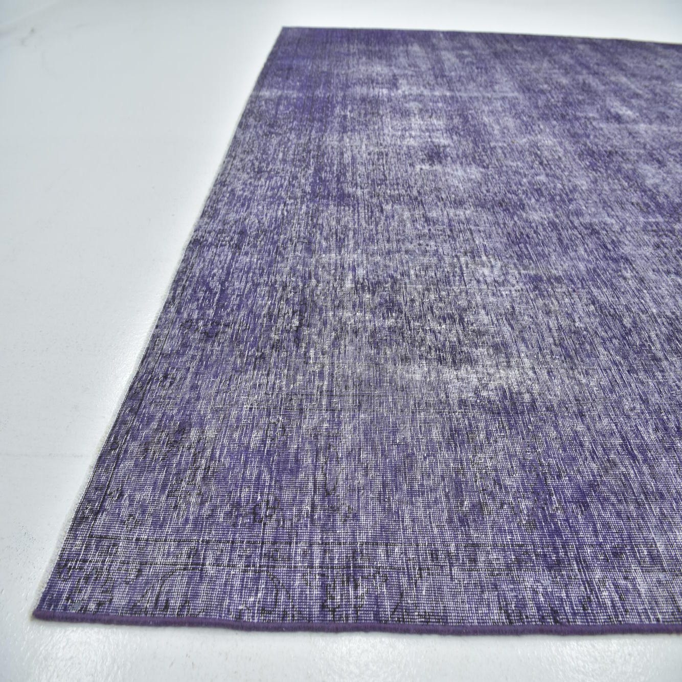 A 9x12 rectangular purple area rug with a distressed, vintage Persian pattern, ideal for a living room.