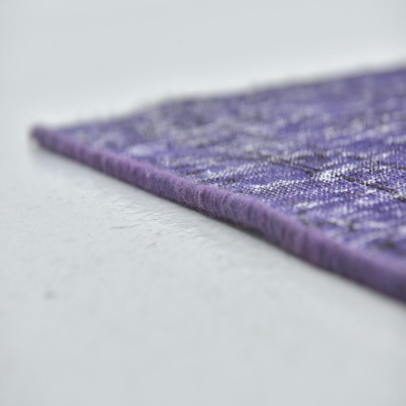 Primary color is Violet. Colors in this rug include: Violet, Ivory, Purple.