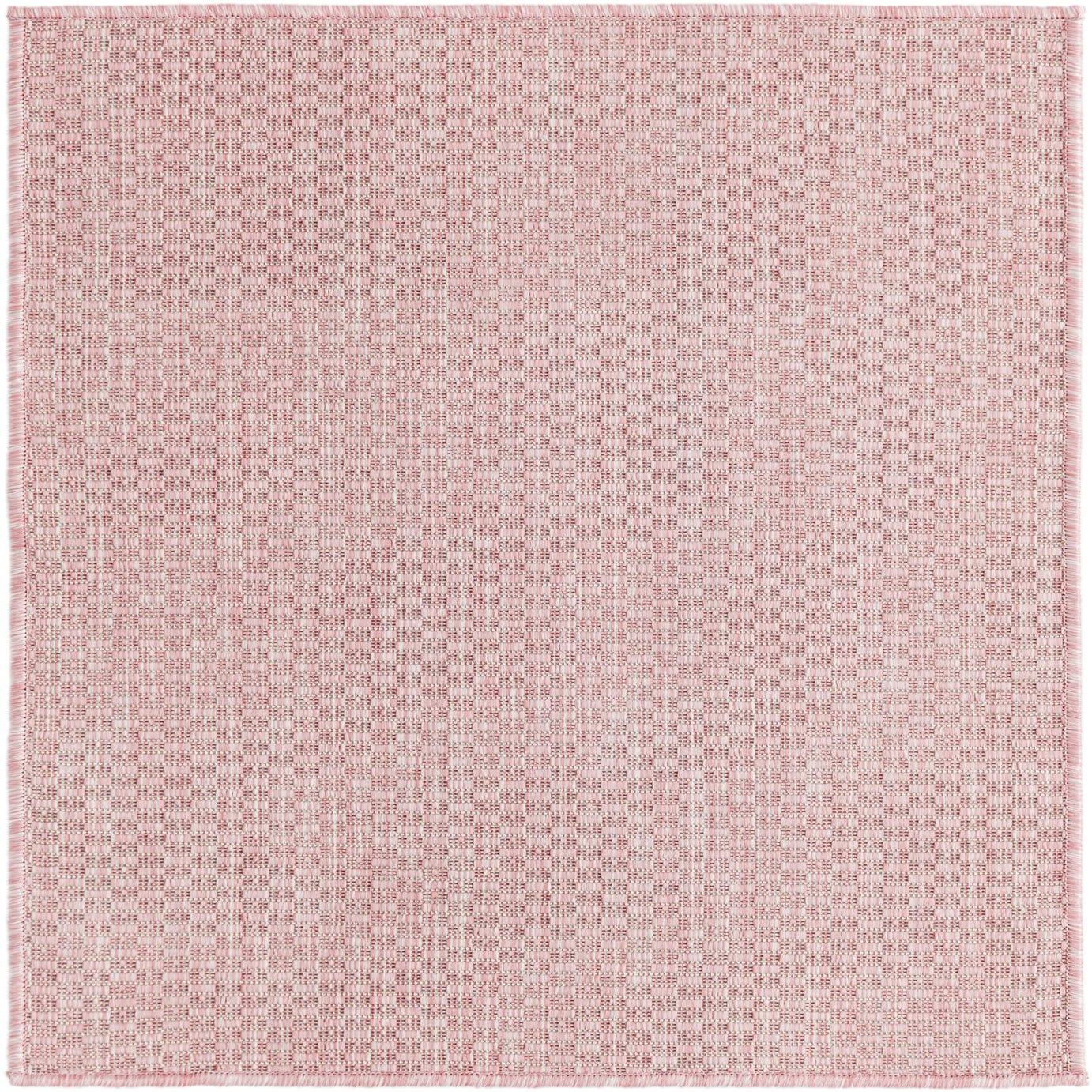 A 2x3 rectangular pink flatweave rug with a subtle textured pattern, suitable for indoor or outdoor use.