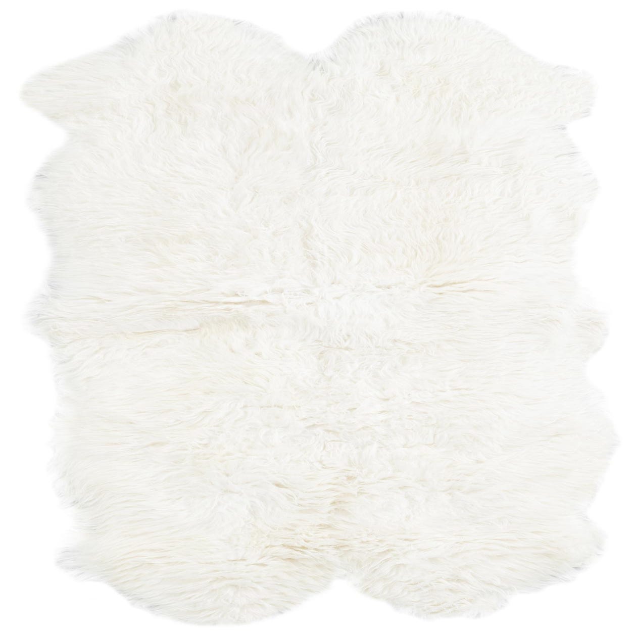 A plush, soft white 3' 3 x 6' 0 freeform lambskin rug with a medium pile, perfect for adding warmth.