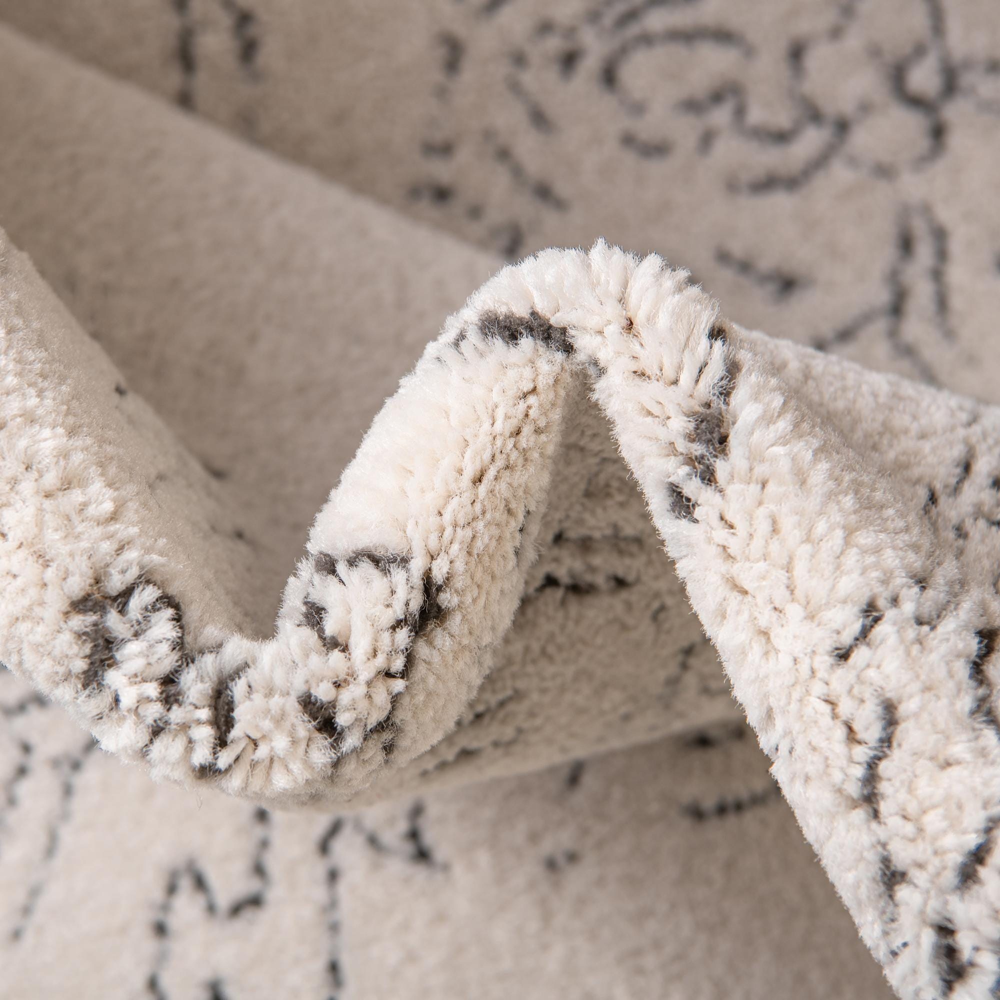 Machine made of polypropylene and polyester, the rug has a low-profile pile with a smooth, slightly brushed hand that feels comfortable underfoot while maintaining a neat, tailored surface. Its neutral palette and antique-modern pattern work well layered beneath a low-profile sofa or centered in a living space to ground seating arrangements. It also pairs cleanly with light wood and metal accents for Scandinavian or industrial interiors, and complements transitional and minimalist schemes where a soft, patterned focal point is desired.