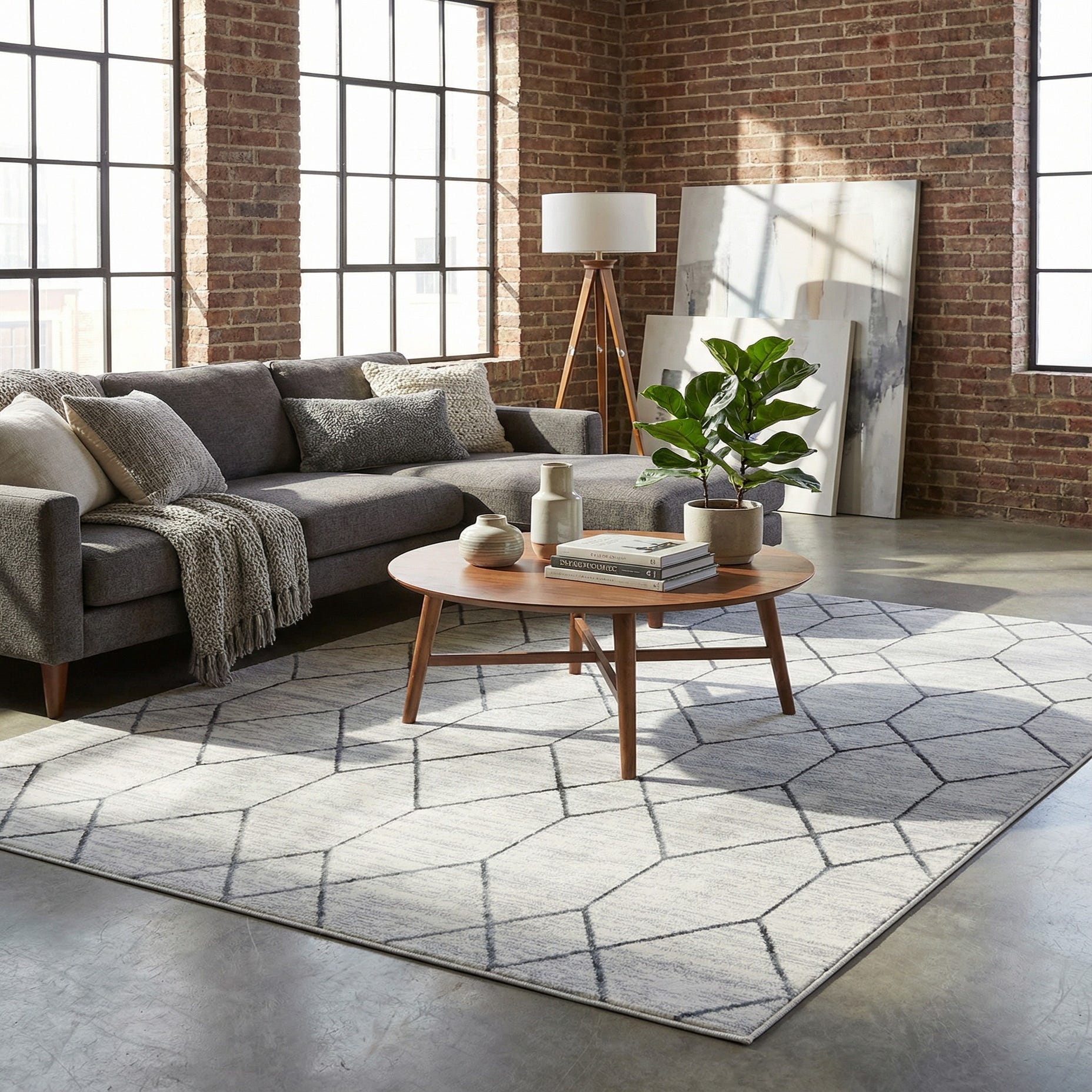 Machine made from 100% polyester, the rug has a low, soft pile that feels smooth underfoot and holds its shape well. Its streamlined profile works nicely as a foundation in contemporary, Scandinavian, or mid-century modern rooms. Use it to anchor a sofa and coffee table in the living room, to add pattern beneath a bed, or to bring a clean, airy look to an entryway or home office. It pairs effortlessly with light wood tones, metal accents, and neutral upholstery.