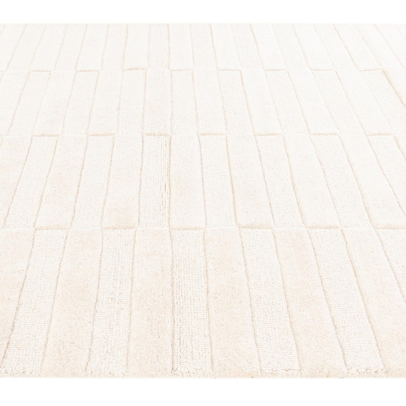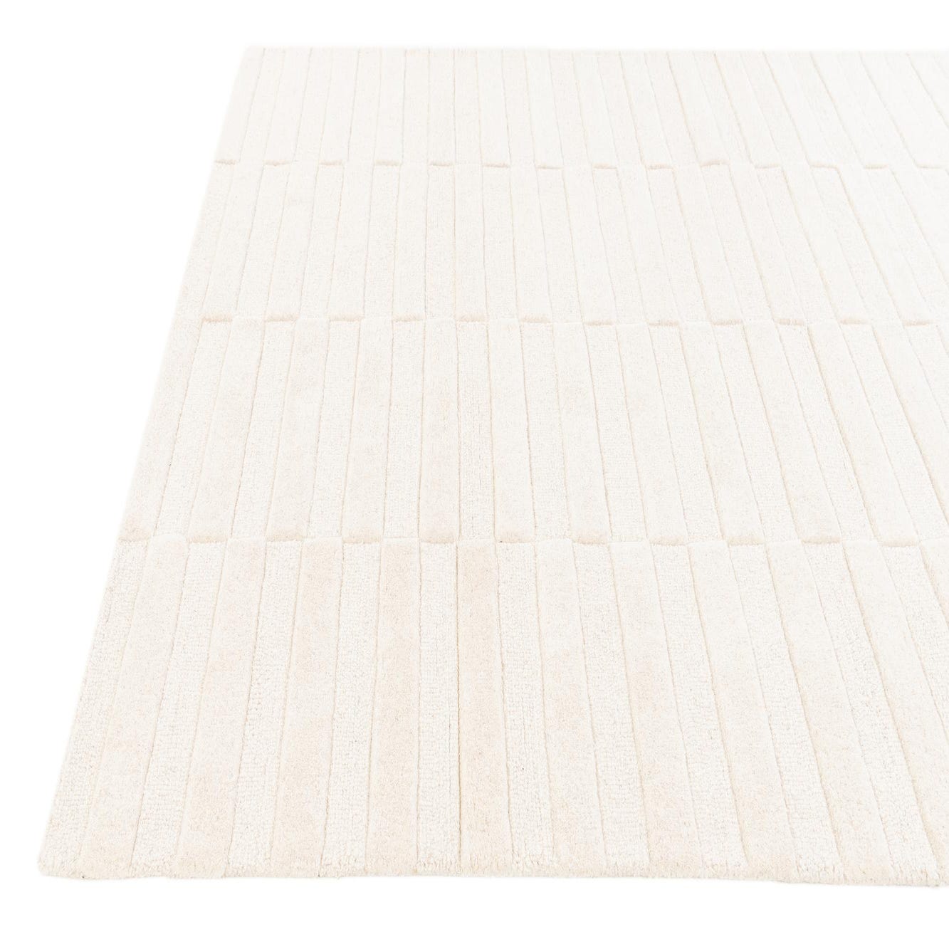 A 5x8 rectangular Luna rug by Rugs.com, featuring a modern textured pattern of alternating raised and flat white wool stripes.