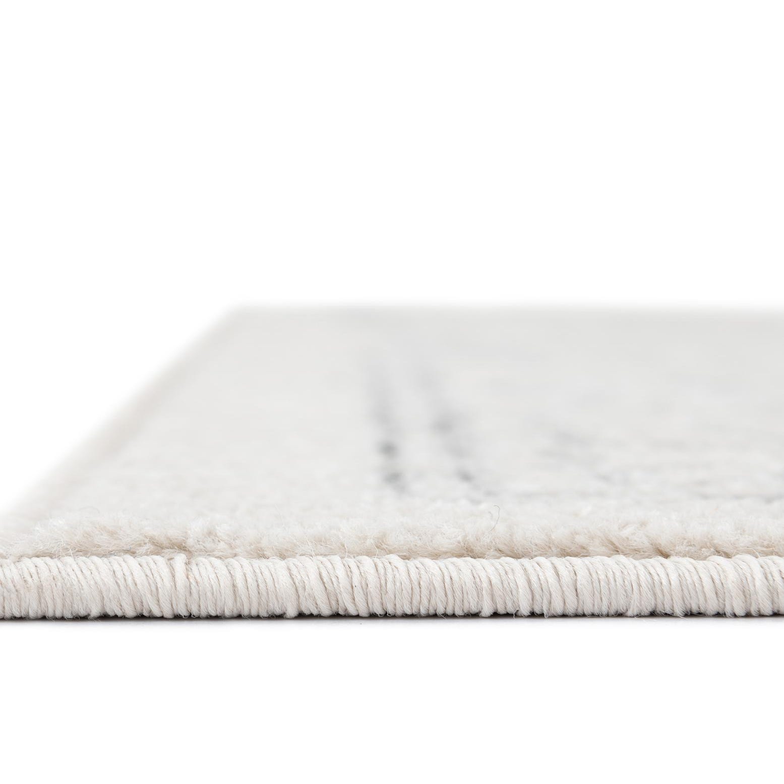 Machine-made of polypropylene and polyester, this rug has a low, even pile with a slight texture where the motif is worked into the surface—pleasant underfoot and visually layered. Place it beneath a round dining table to echo the shape, use it to define a compact seating area, or set it in an entry or reading nook to introduce pattern without overwhelming the space. It pairs well with clean-lined, modern furnishings, Scandinavian or minimalist schemes, and interiors that favor black-and-white contrast with light wood accents.