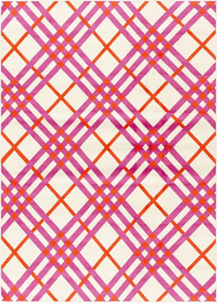 Primary color is White. Colors in this rug include: White, Red, Ivory, Purple.