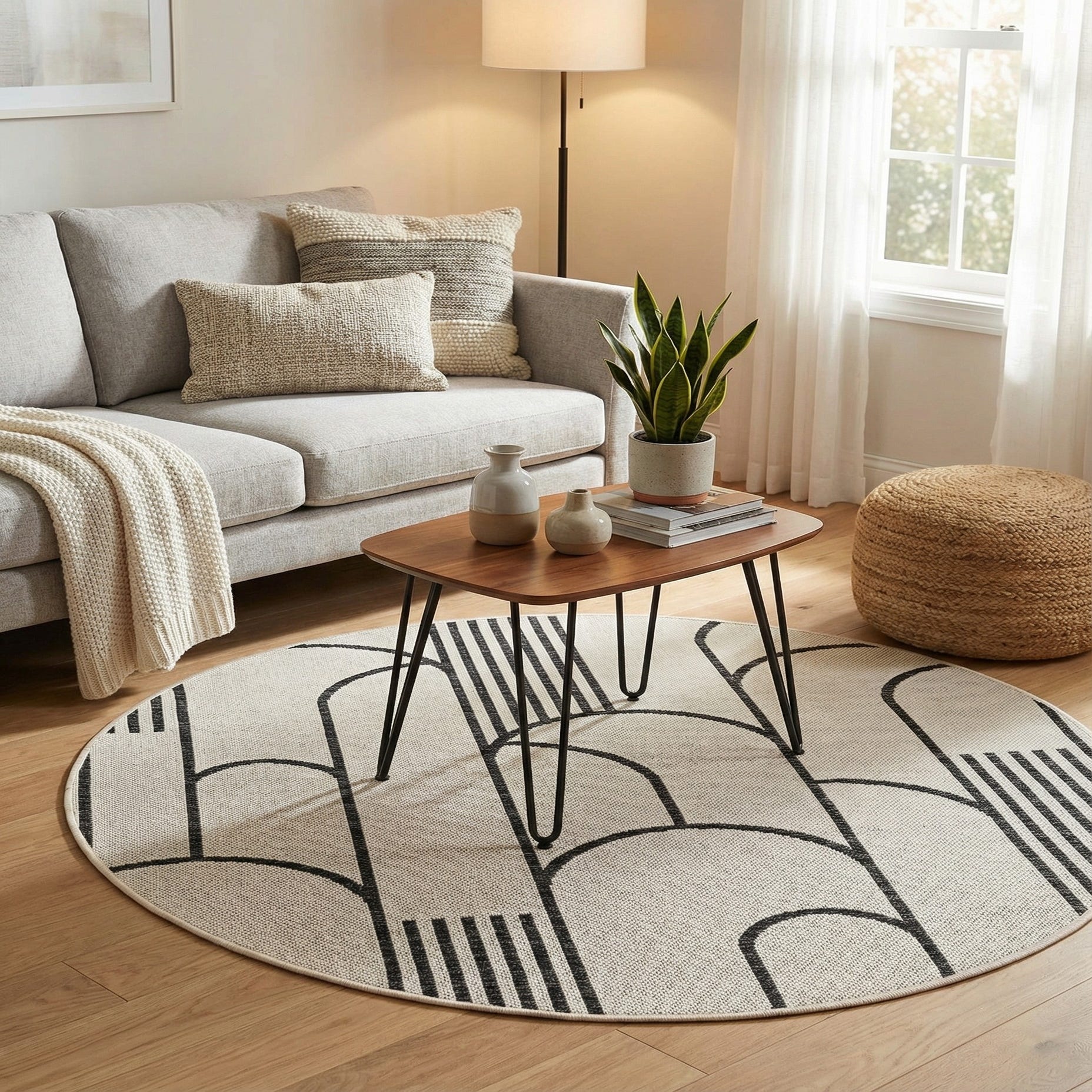 4' x 4' Washable Modern Indoor / Outdoor Round Rug