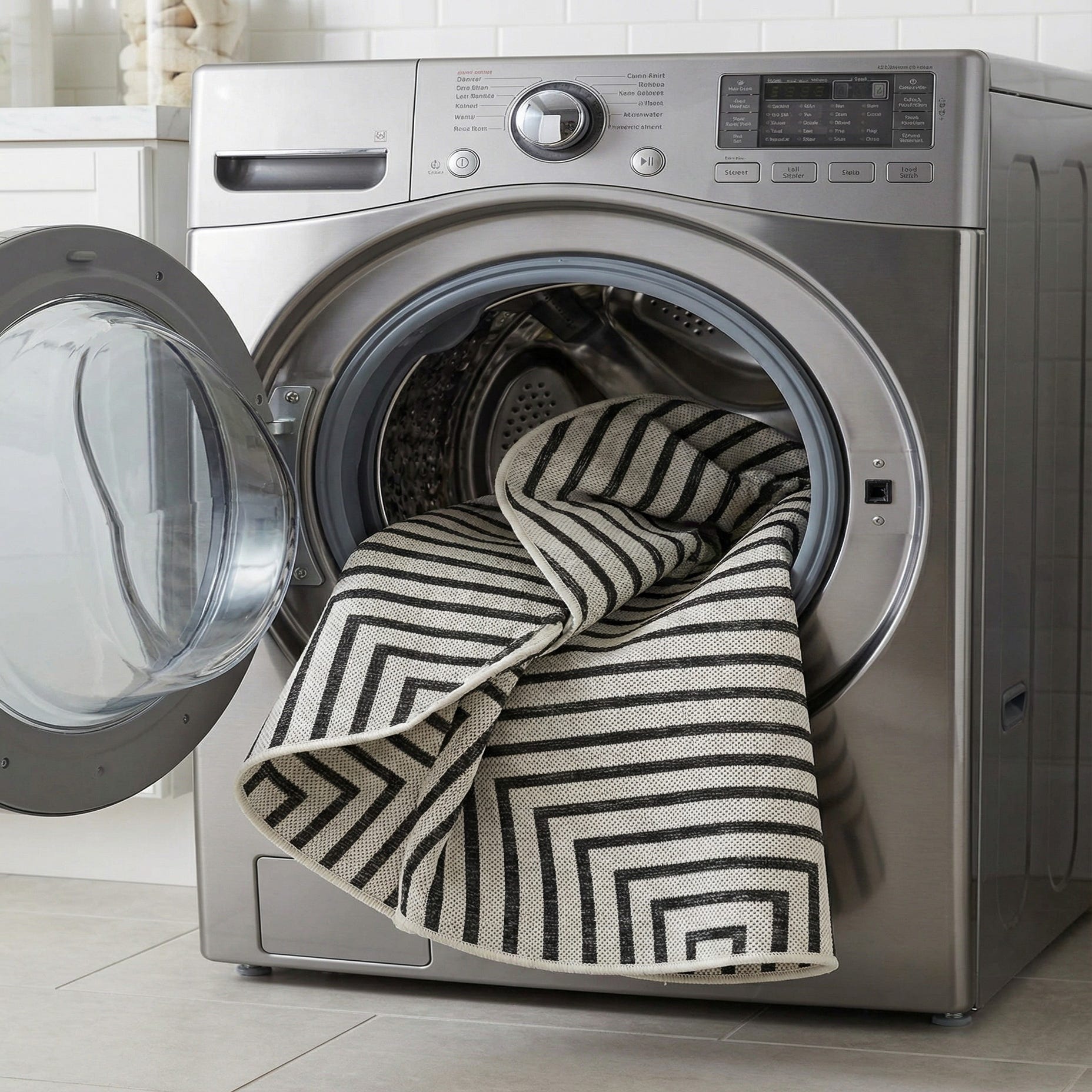 The boldness of black and white makes this rug versatile within various decor schemes, allowing it to anchor spaces with modern, monochromatic themes, as well as to inject a touch of sophistication to outdoor patios or indoor spaces in need of a visual statement piece. The clean and precise design language of this rug makes it compatible with minimalist interiors, contemporary outdoor settings, or even as a contrasting element within more eclectic decors.