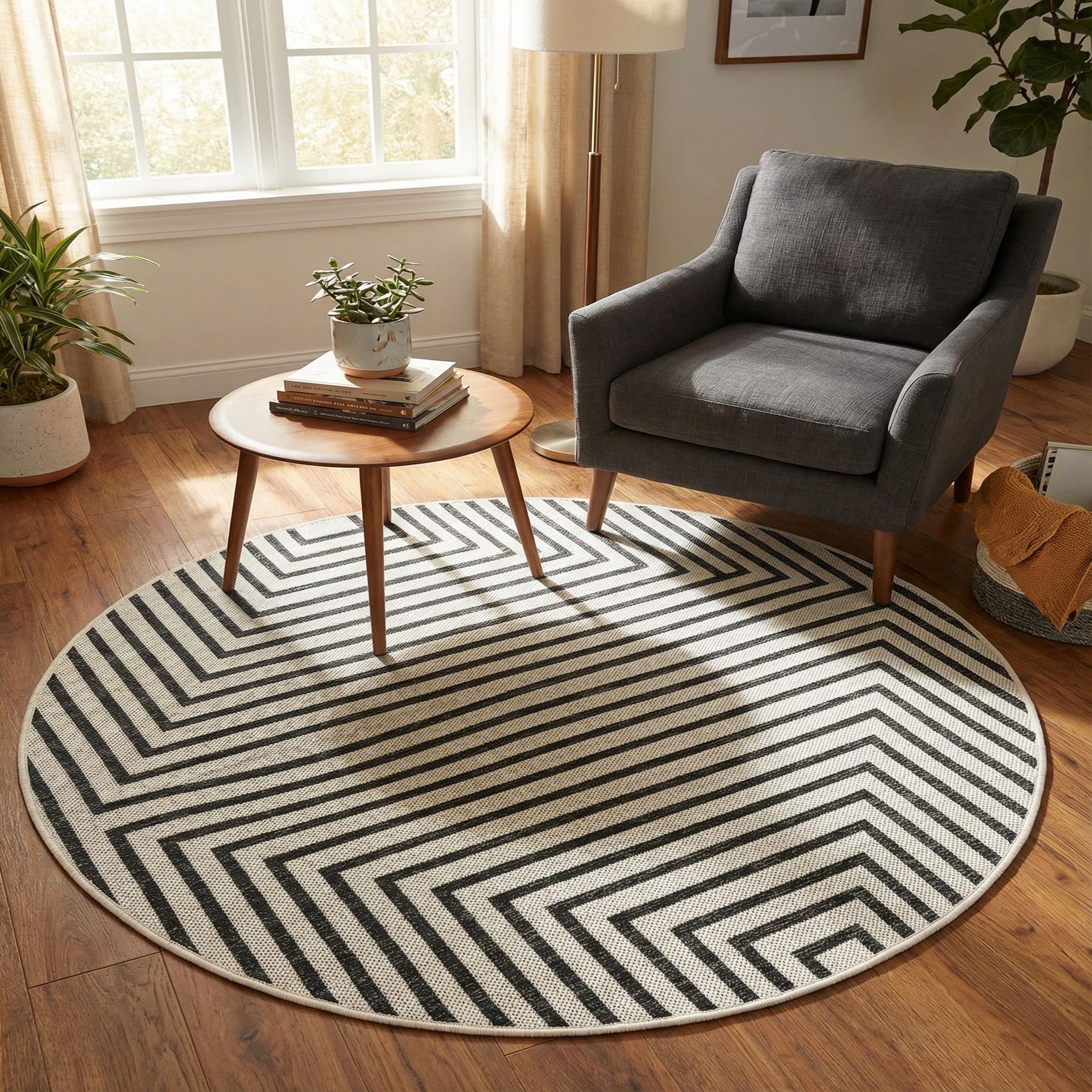 4' x 4' Washable Modern Indoor / Outdoor Round Rug