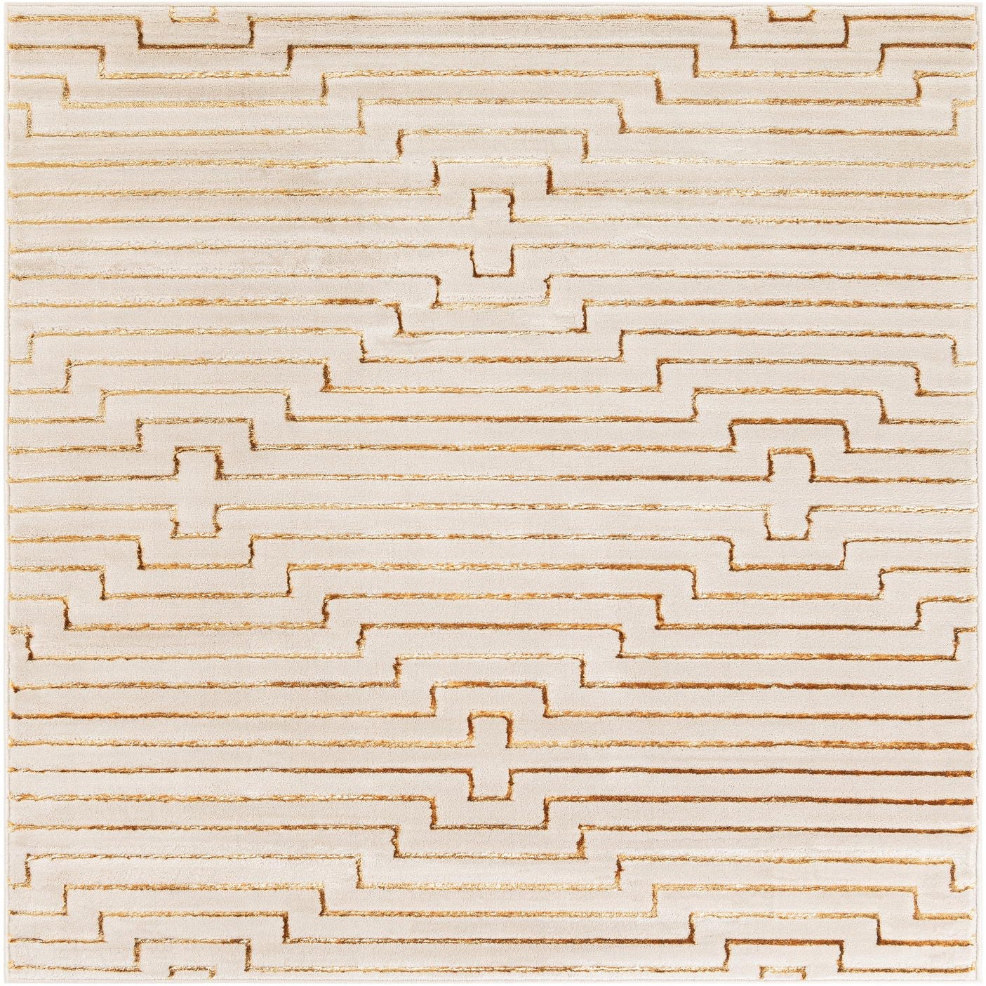 A 5x7 rectangular white and gold modern area rug with a textured geometric pattern, ideal for indoor living spaces.