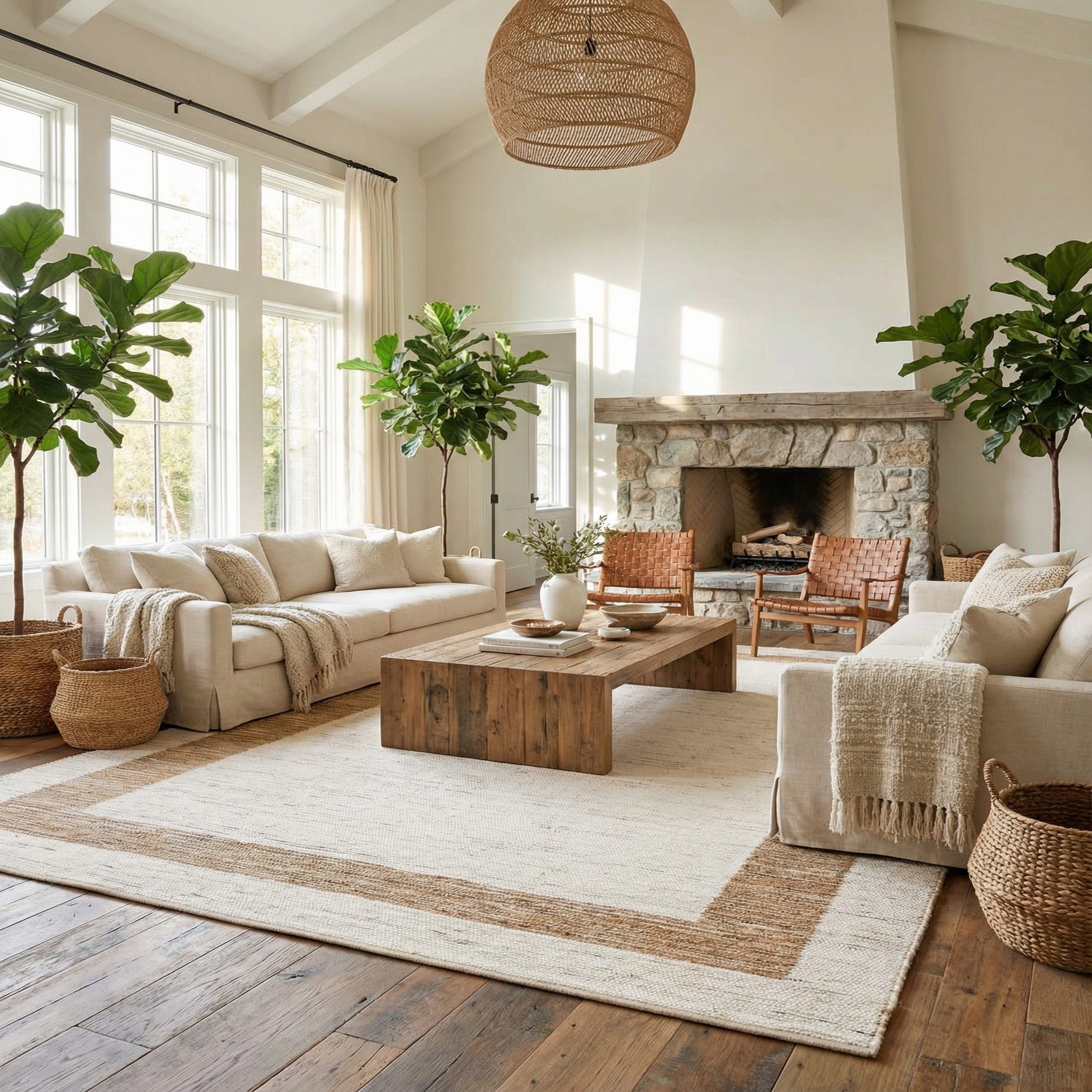 The rug pairs easily with coastal, Scandinavian, modern farmhouse or minimalist interiors, where its neutral tones and restrained pattern support layered textures and warm wood finishes. Use it to anchor a living room seating area, beneath a dining table, or layered at the foot of a bed to introduce tactile interest without overwhelming the room.