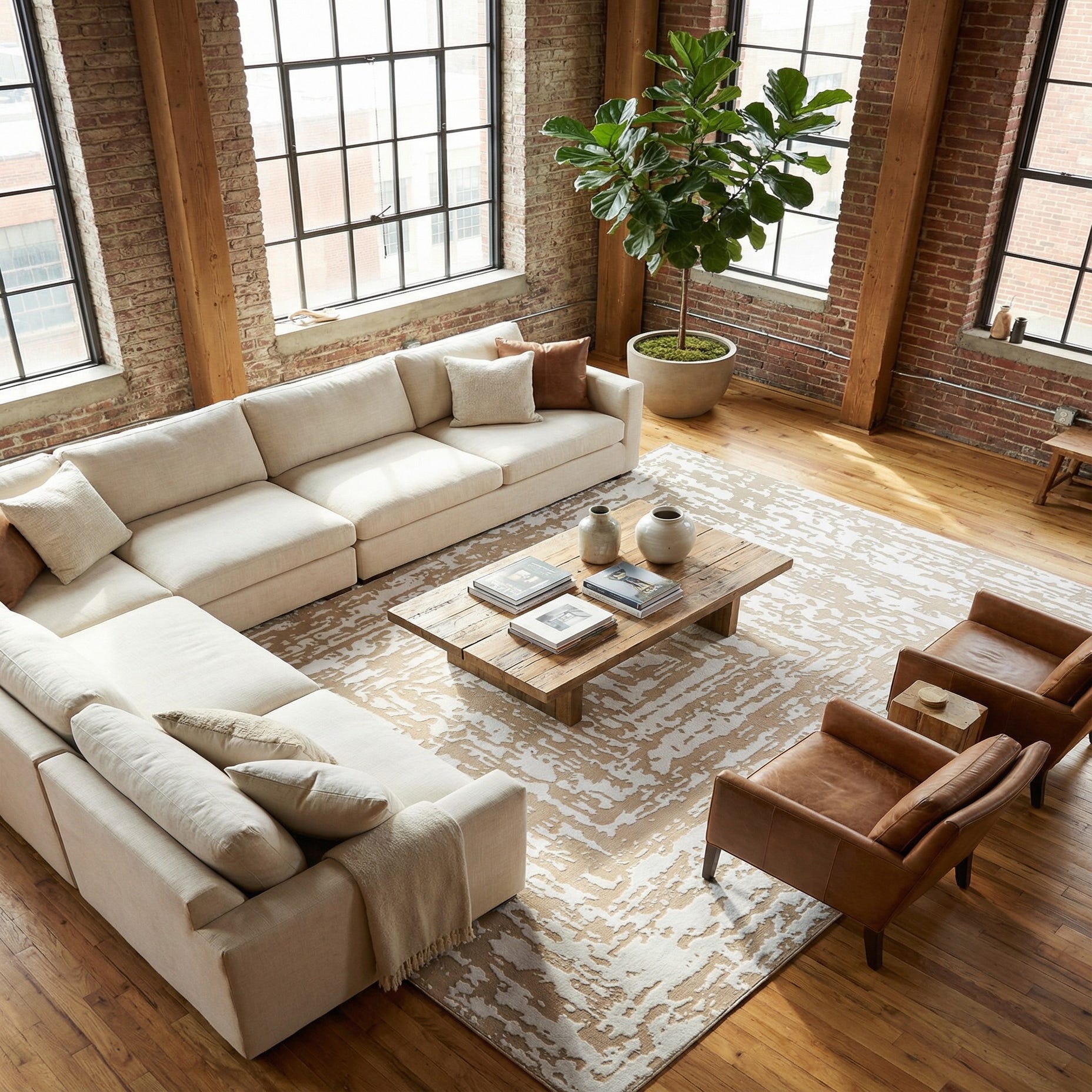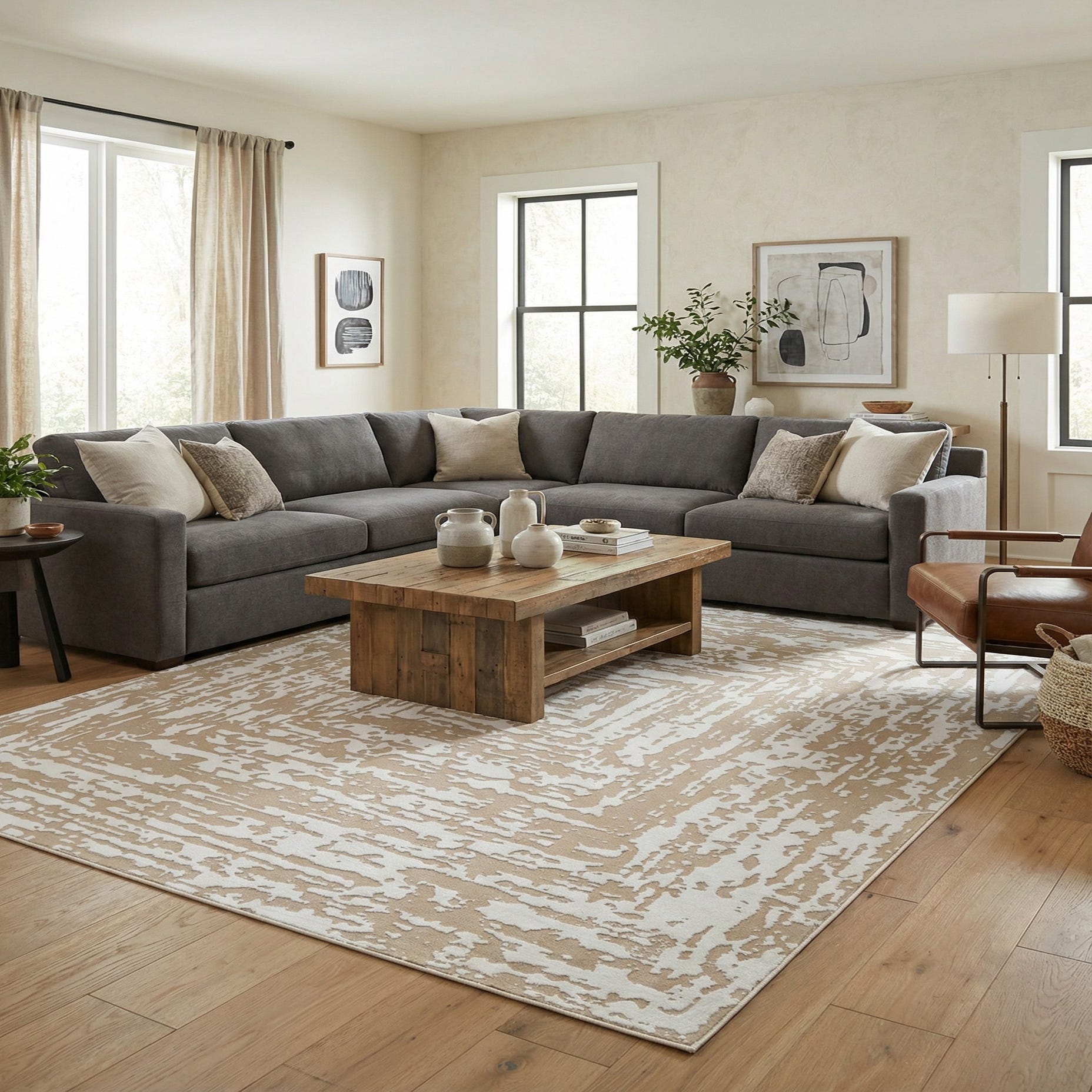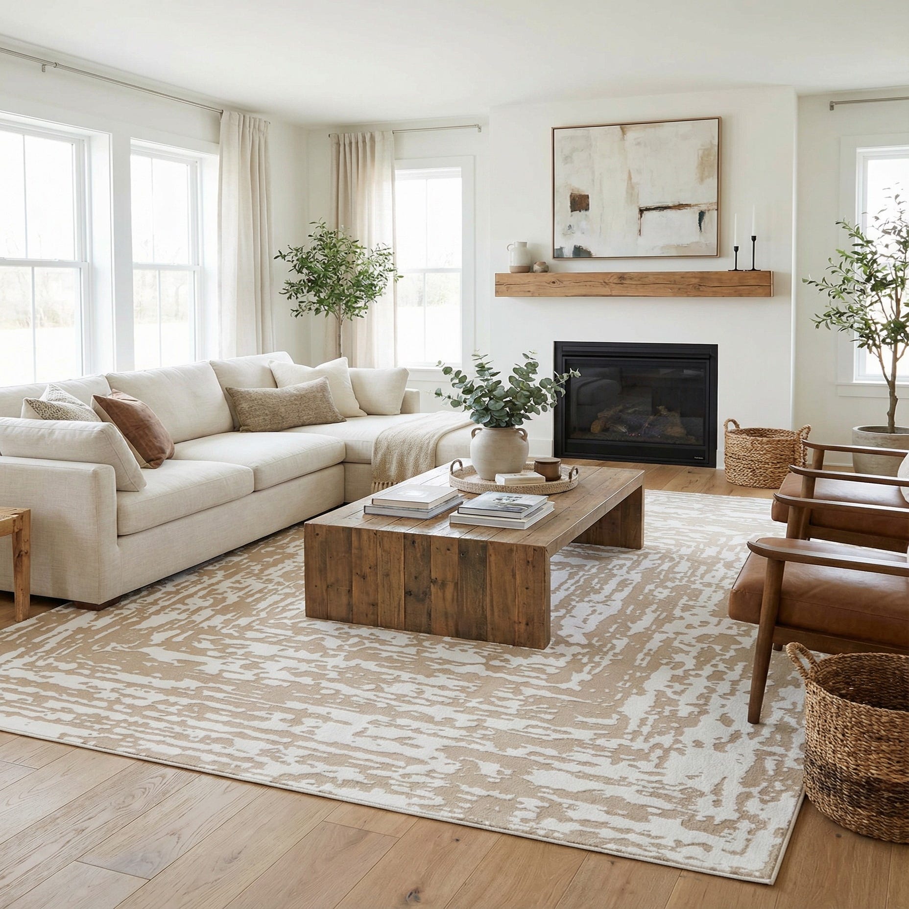 This rug's shed-free and stain-resistant features ensure its longevity and ease of maintenance, making it a practical choice for high-traffic areas. It would perfectly complement minimalist or modern interiors, serving as a subtle centerpiece. It can also serve to soften industrial design elements, bringing warmth to spaces with exposed hardware and raw materials. For a more traditional setting, it would provide a touch of modernity without overwhelming classic aesthetics.