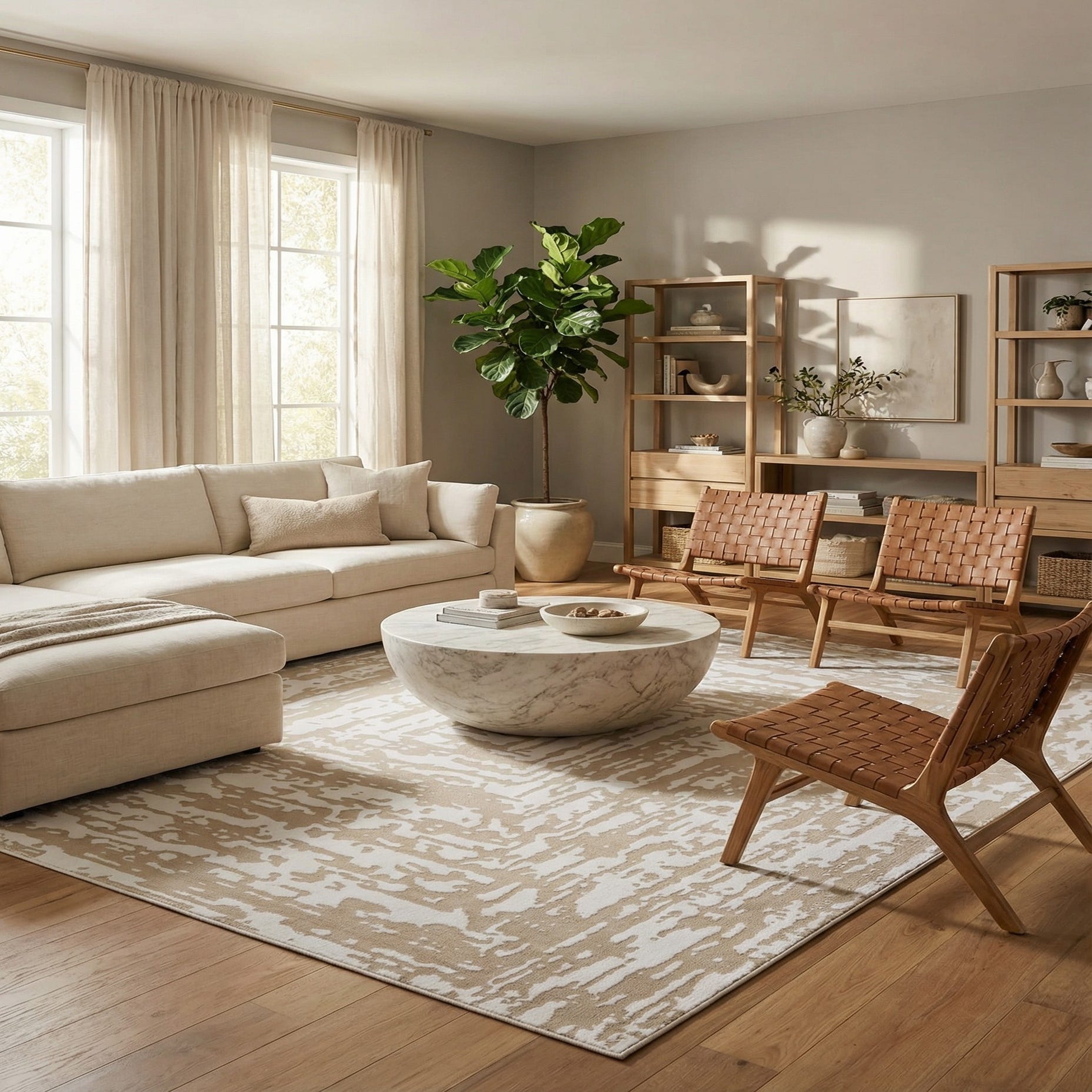 The stain-resistant and shed-free properties of the rug not only enhance its aesthetic appeal but also contribute to its practicality for daily use. Given its neutral tones and contemporary design, this rug would complement minimalist, Scandinavian, or modern farmhouse settings beautifully. It also serves as an anchoring element in a more eclectic space where it would balance out more vibrant decor pieces.