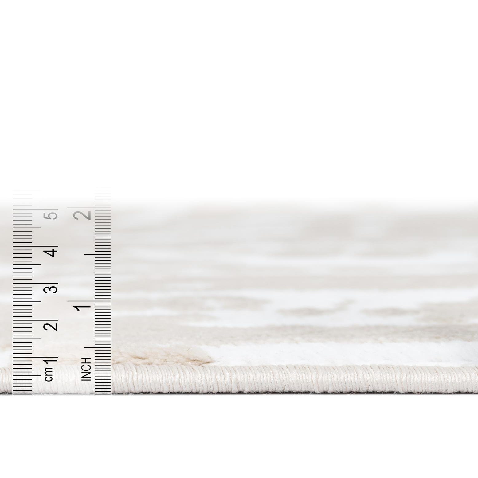 This neutral palette and understated design work well in contemporary and transitional rooms—place it beneath a round dining table, in a cozy reading nook, or in a serene bedroom to anchor light-colored furnishings. It pairs naturally with linen upholstery, pale wood tones, and warm metal accents, and provides a quiet backdrop for layered patterns or bolder artwork without drawing attention away from the rest of the space.