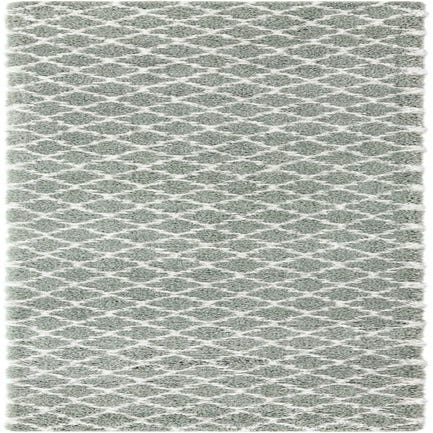A soft, shag pile in a Moroccan-inspired trellis pattern gives this runner a tactile, layered look. An ivory lattice sits over a White Cyan background, the contrast created by the plush ivory shapes against the cool White Cyan field. Machine-made of polypropylene, the construction produces a dense, cushioned surface that invites touch while holding a consistent pile and pattern throughout the length.