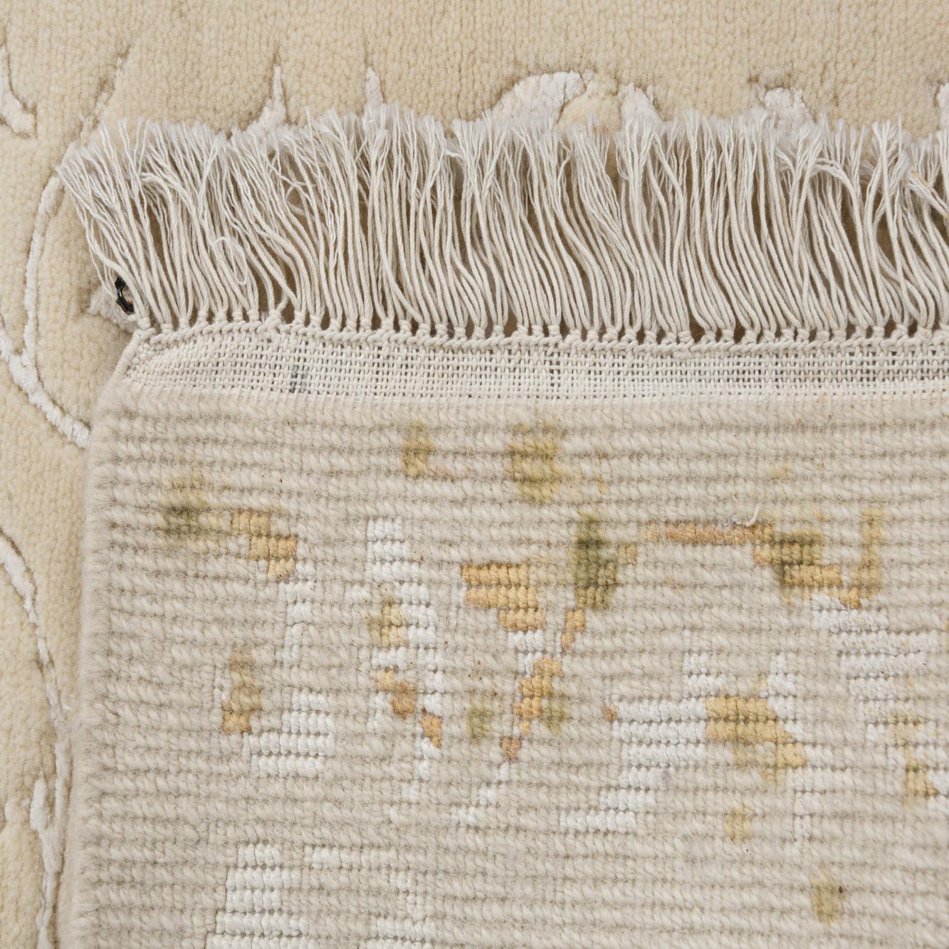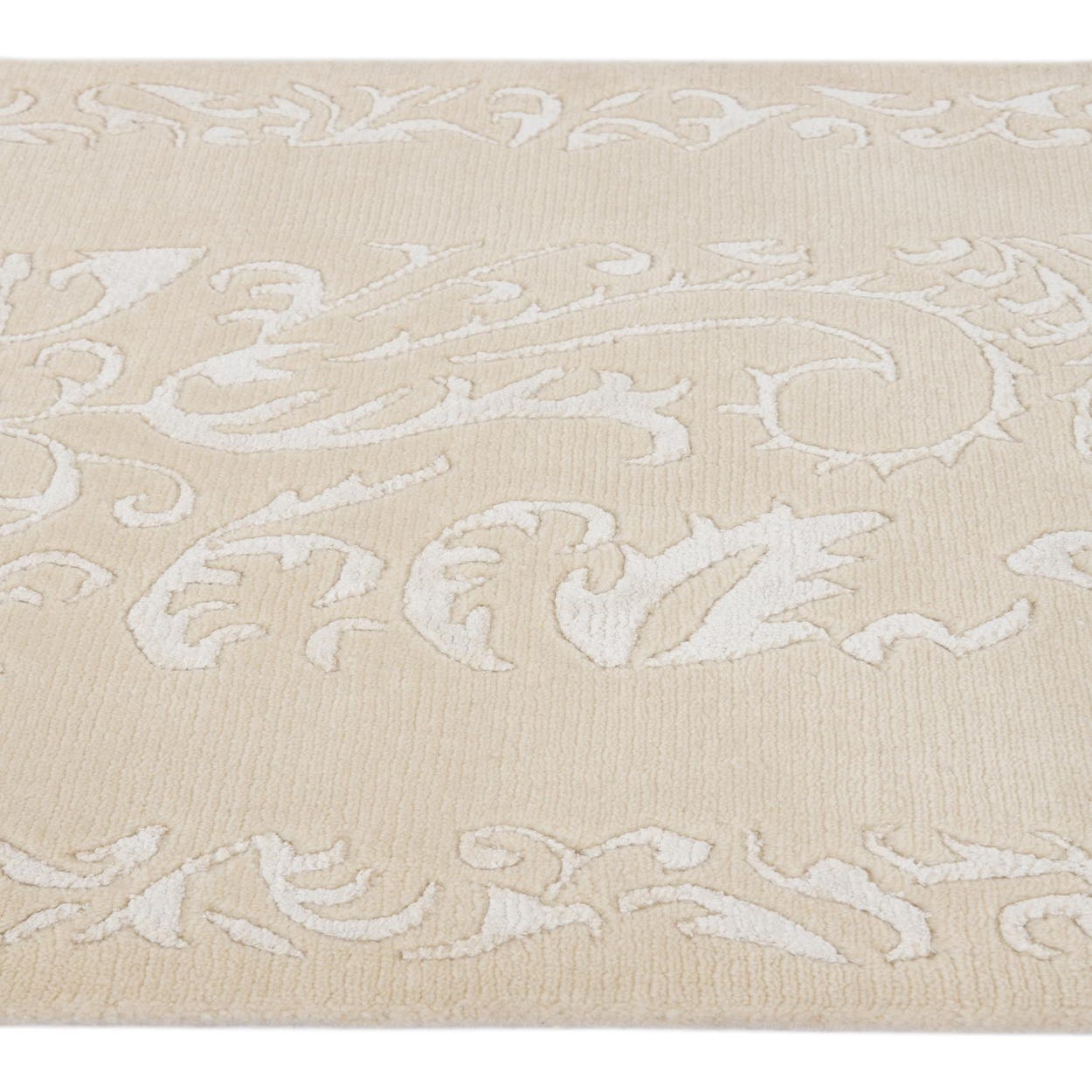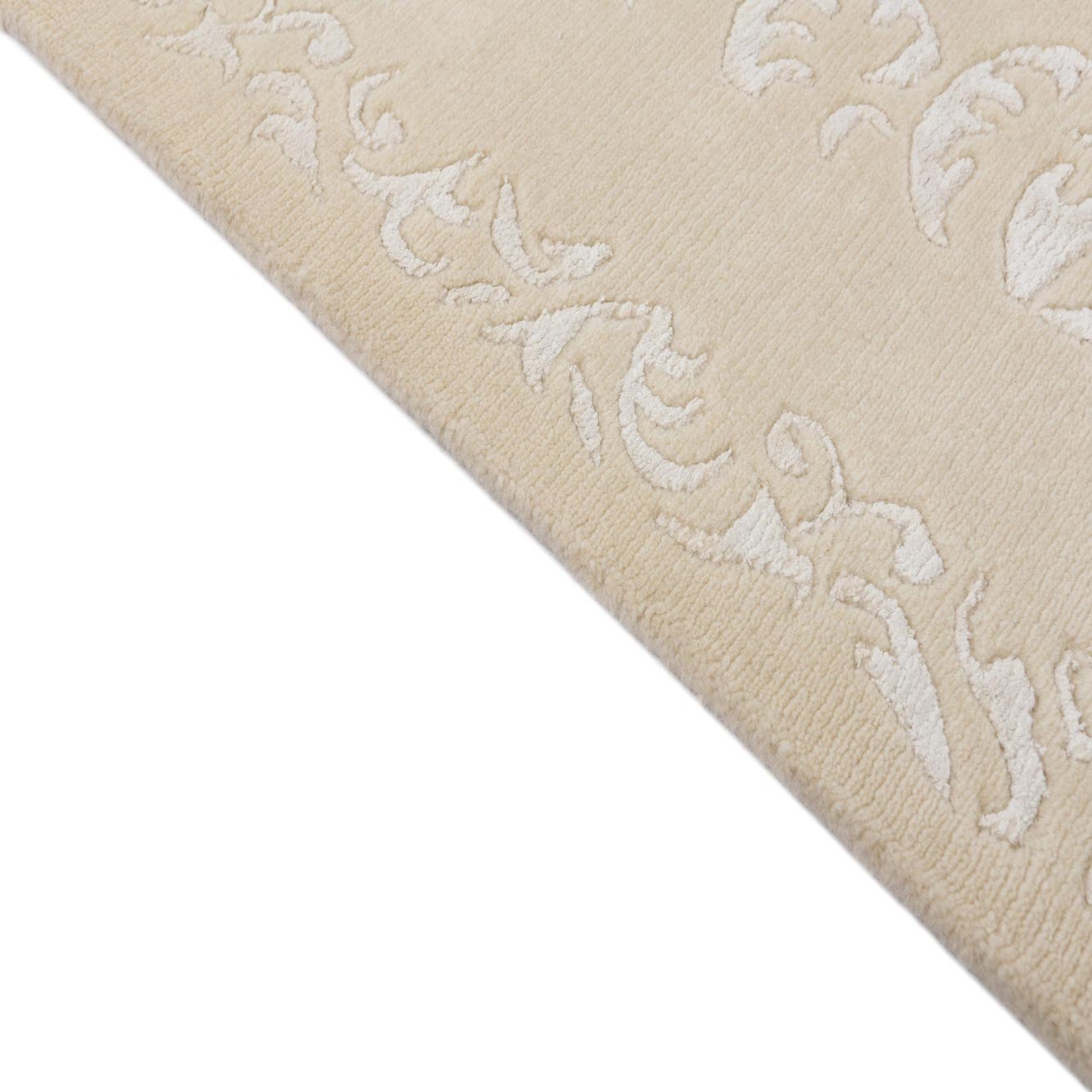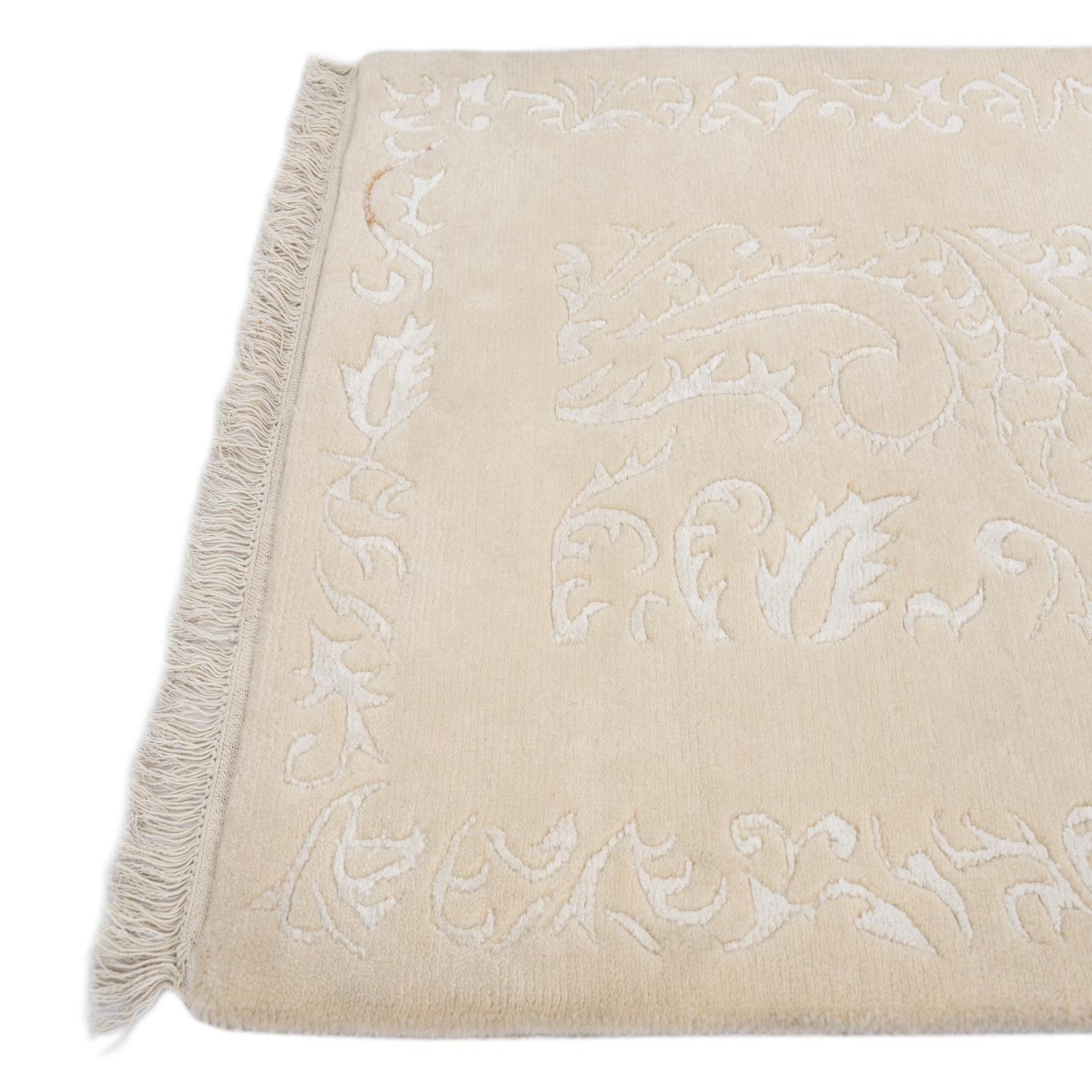 The Darya collection 13 Ft Runner is a hand-knotted rug crafted from 100% wool, known for its durability and natural texture. This rug features a White Ivory background with a subtle raised Ivory pattern, presenting a sophisticated tonal design. The pattern consists of elegant scrolling motifs, reminiscent of classic architectural details, which brings a sense of traditional charm.
