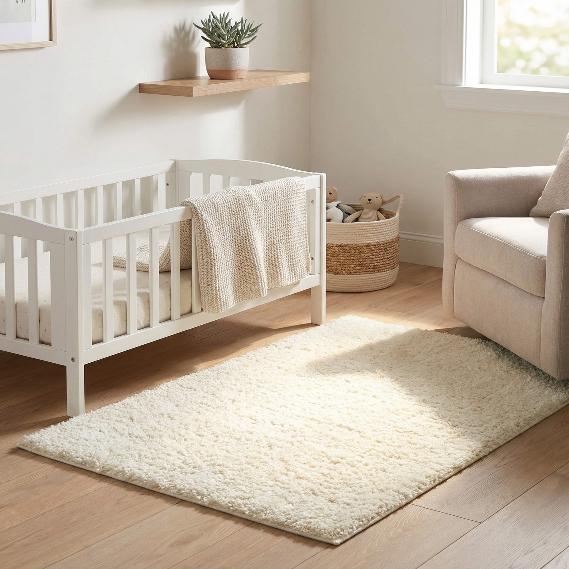 This rug's solid coloring makes it a versatile choice that can anchor a diverse range of design aesthetics. It would effortlessly complement a minimalist modern setting, enhance the serenity of a Scandinavian-inspired space, or bring softness to an industrial room with its cushioned surface. Additionally, being stain-resistant and shed-free, the Soft Solid Shag rug offers practicality, making it suitable for high-traffic areas in the home such as living rooms, bedrooms, and family rooms.