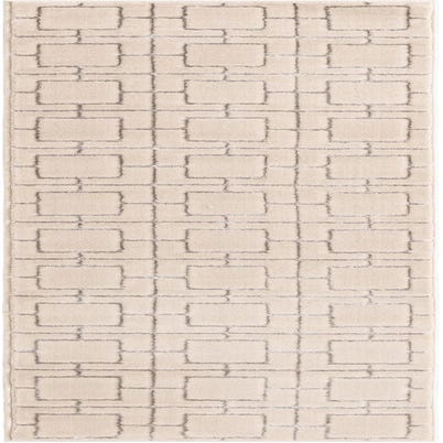 A modern geometric trellis rendered in soft metallic tones gives this runner a refined, contemporary look. Rectangular blocks linked by narrow lines form a repeating pattern across a White Silver ground, with Silver outlines that catch light and add a subtle sheen. The pile has a gentle plushness underfoot, while the trellis outlines sit slightly higher to create low-relief texture and visual depth.