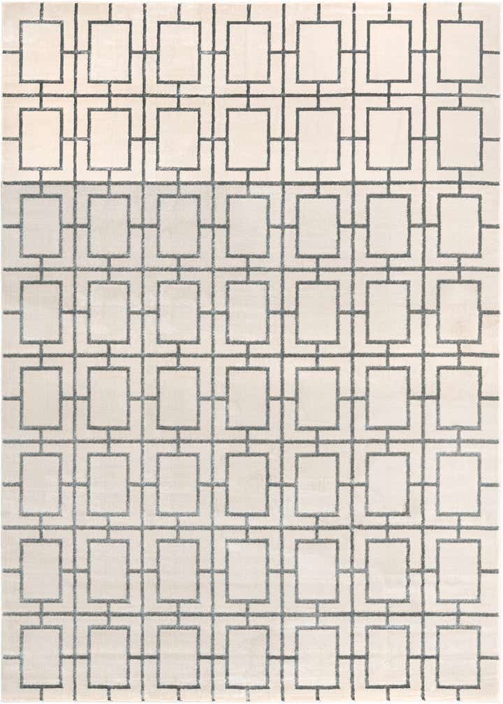 This design pairs well with contemporary and transitional interiors — place it beneath a streamlined sofa grouping to anchor a living room, under a long dining table in an open-plan space, or layered beneath a bed to add pattern without overwhelming a calm bedroom palette. Silver accents, glass or chrome furnishings, and cool neutral textiles will complement the rug’s tones while letting its graphic trellis provide visual interest.