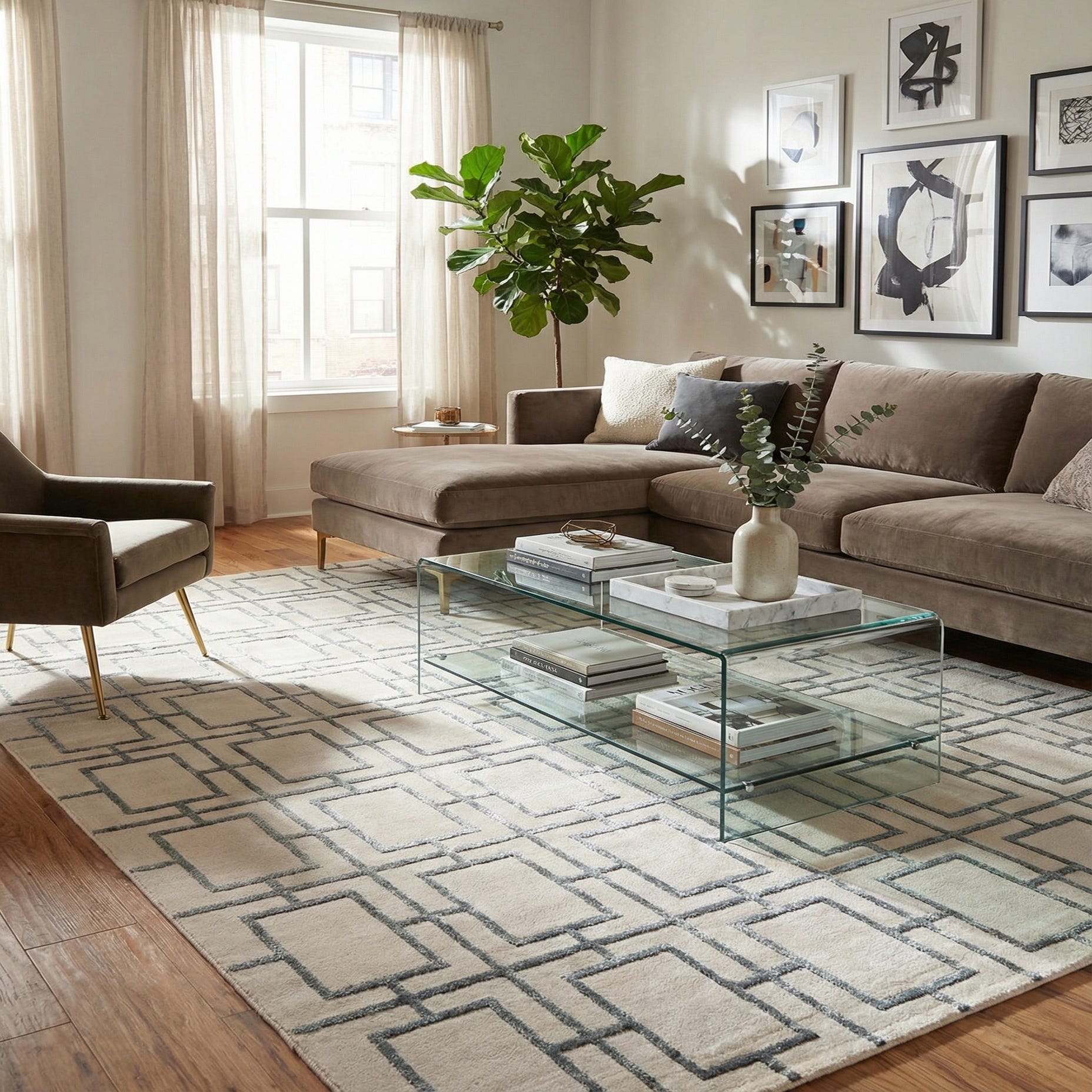 This rug works well as an anchor in a contemporary living room beneath a sofa and coffee table, or layered under a bed to add a tailored, luminous base for neutral bedding and metallic accents. It also complements a chic home office or dining area where clean lines and a restrained palette support minimalist furniture and mirrored or chrome finishes. Pair it with soft grays, cool whites, and brushed-metal accessories for a cohesive, modern look.