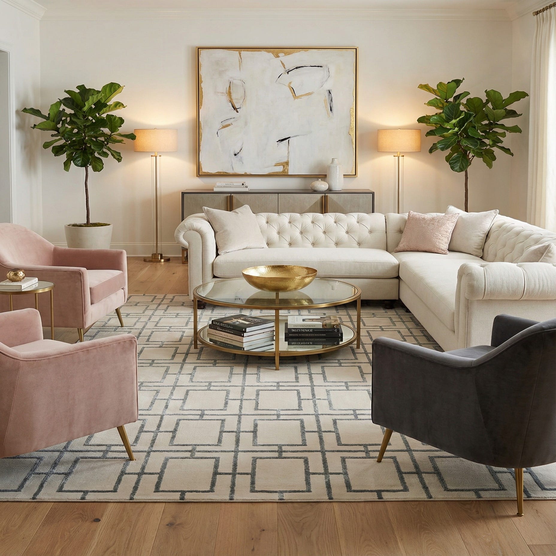 This rug works well as an anchor in a contemporary living room beneath a sofa and coffee table, or layered under a bed to add a tailored, luminous base for neutral bedding and metallic accents. It also complements a chic home office or dining area where clean lines and a restrained palette support minimalist furniture and mirrored or chrome finishes. Pair it with soft grays, cool whites, and brushed-metal accessories for a cohesive, modern look.