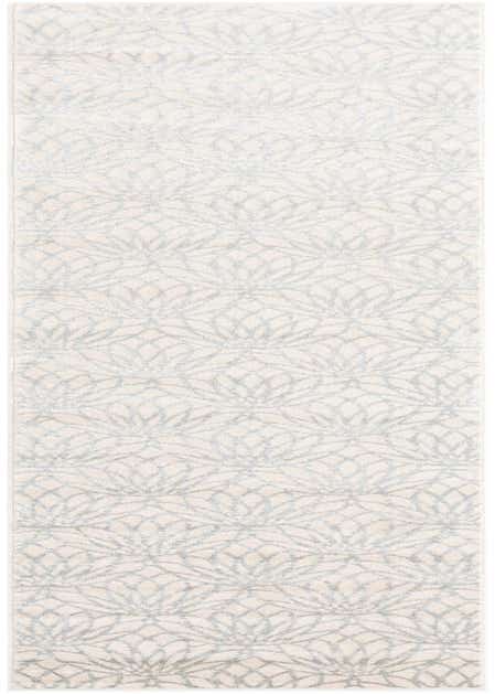 A 12 ft runner rug from the Marilyn Monroe Glam Trellis collection, featuring a modern floral pattern in grays and silvers on a white background, ideal for a hallway.