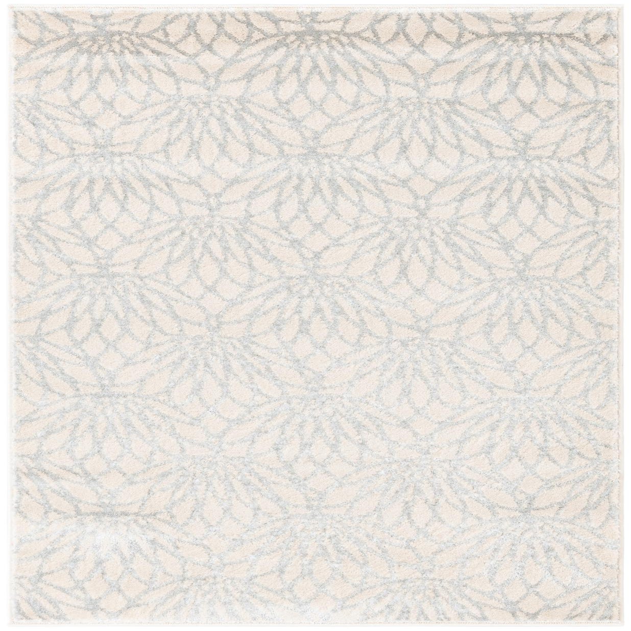A 3x5 rectangular Marilyn Monroe Glam Trellis rug featuring a textured gray floral pattern on a white background, suitable for indoor spaces.