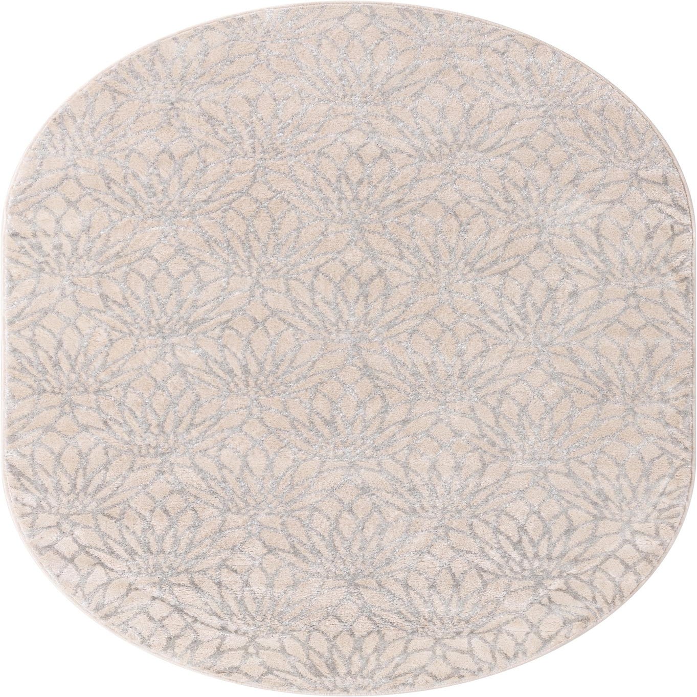An oval 4'x6' Marilyn Monroe Glam Trellis rug in grays and silvers with a textured floral pattern.