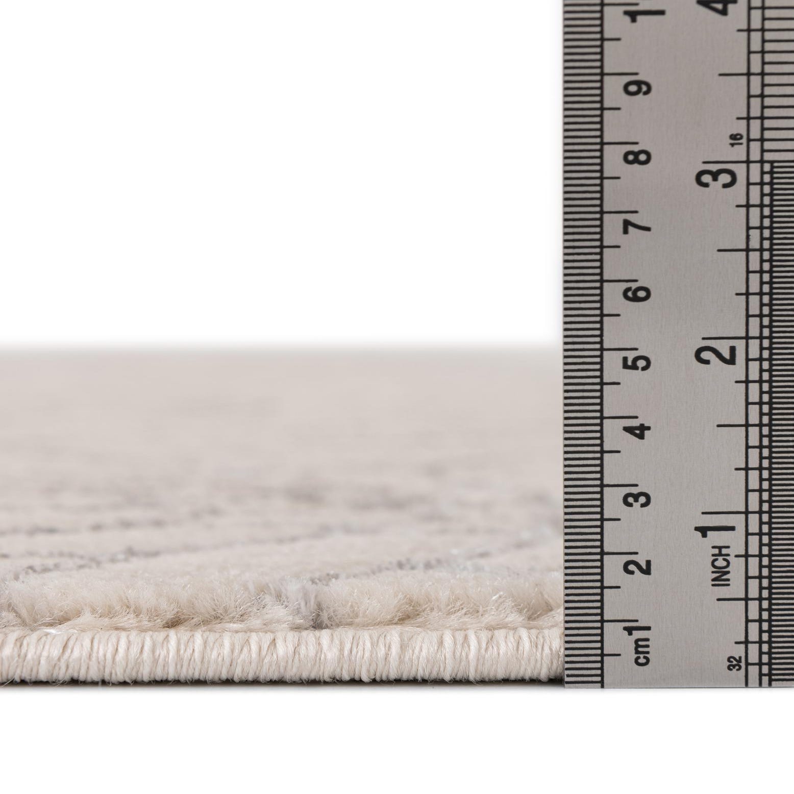 Stain-resistant and shed-free, this rug is designed to maintain its appearance over time, making it an ideal choice for high-traffic areas or living spaces where both style and practicality are paramount. Its subtle pattern and light color scheme would complement spaces with natural light, metallic accents, or a monochromatic color scheme to enhance its understated glamour.