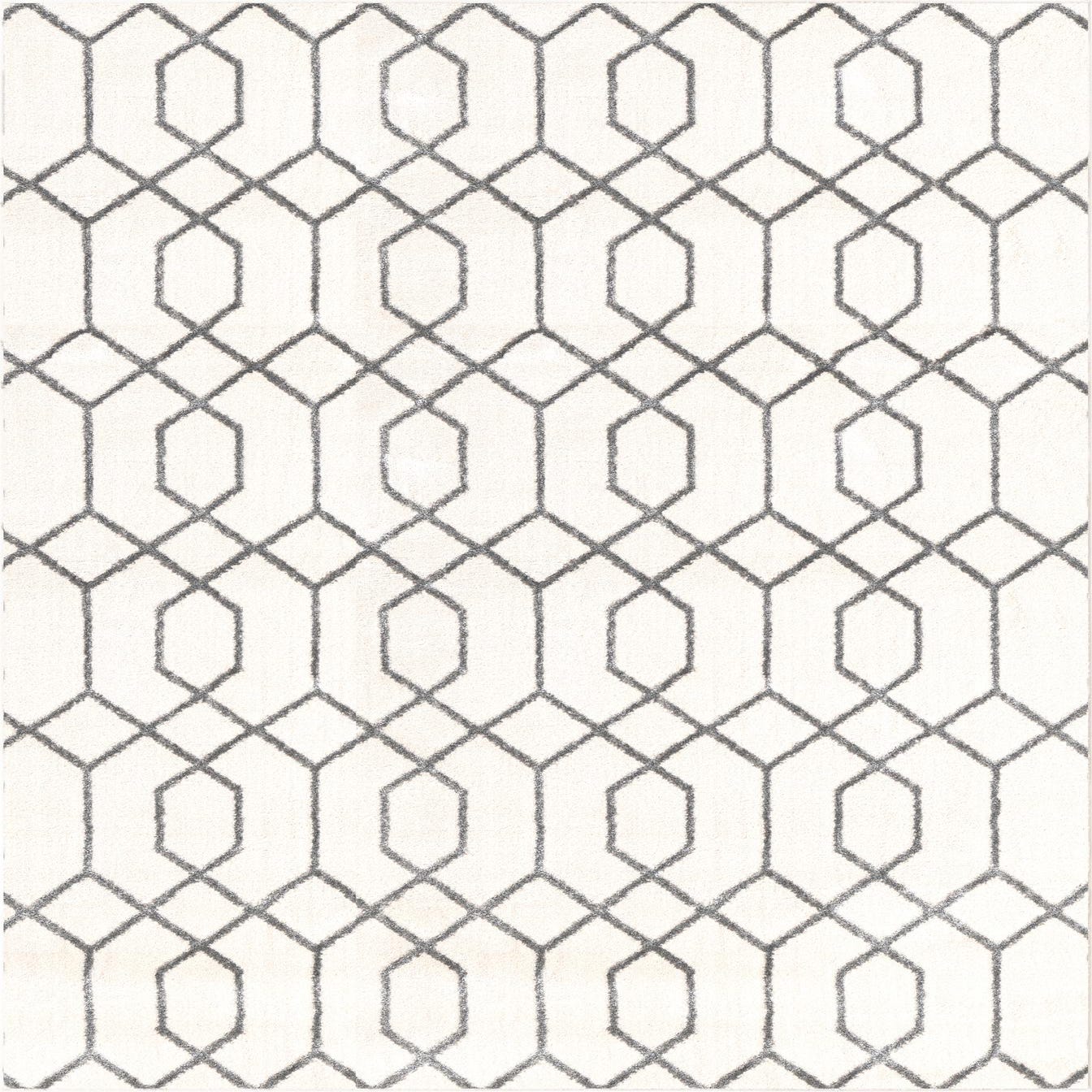 A 6x9 rectangular Marilyn Monroe Glam Trellis rug with a gray geometric trellis pattern on a white textured background, suitable for a living room.