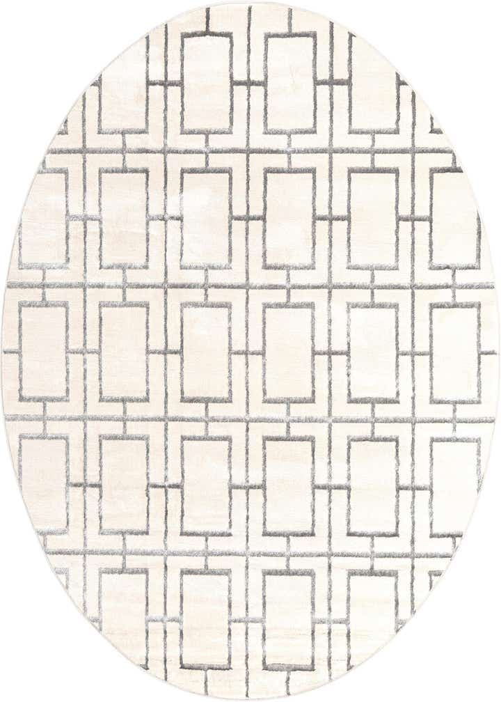 This neutral, contemporary rug fits a variety of interiors — use it beneath a round dining table to reinforce shape, anchor a compact seating area, or place it at the foot of a bed to introduce refined contrast on hardwood or tile. It pairs well with cool-toned upholstery, metallic accents, and light wood finishes for a fresh, modern look, or can soften stronger patterns when layered into a transitional or Scandinavian-inspired scheme.
