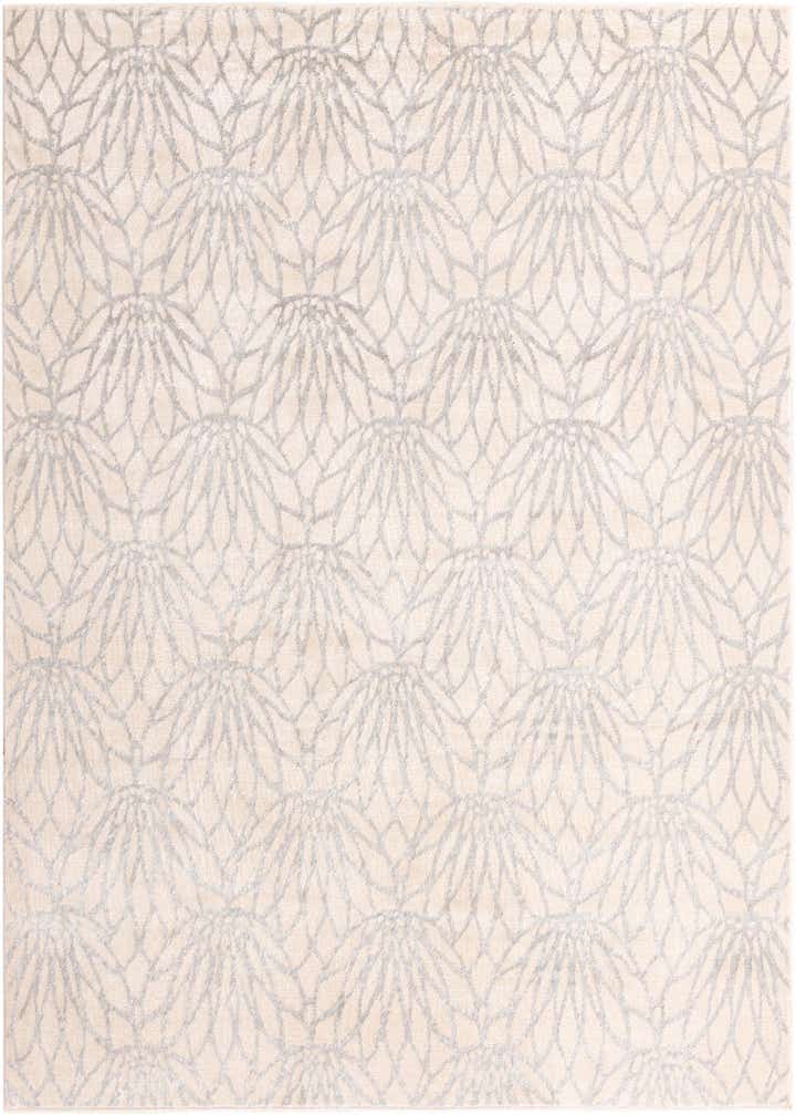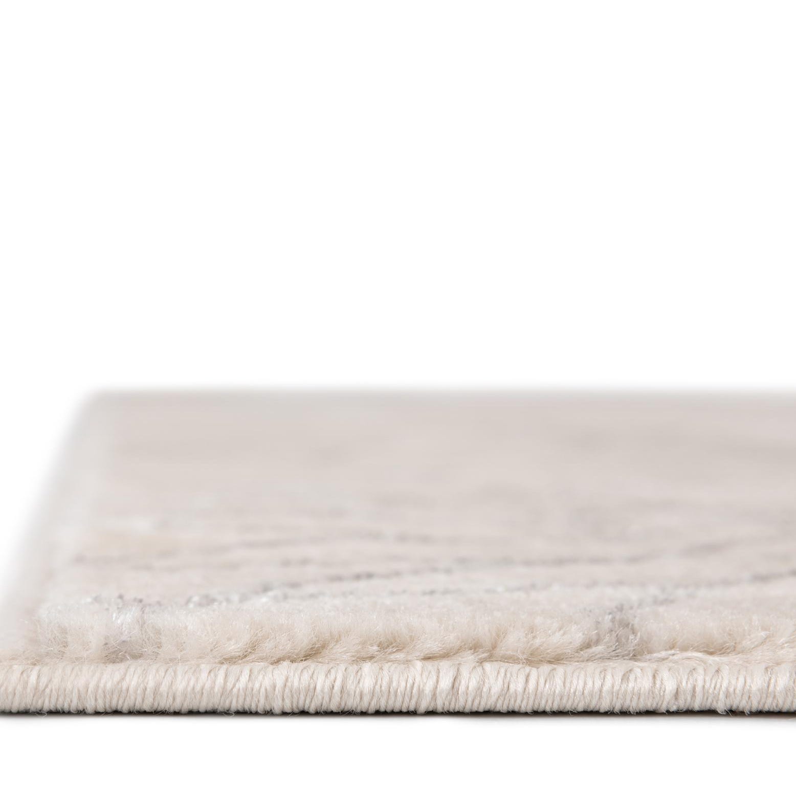 Machine made from 70% polypropylene and 30% polyester, the surface has a soft hand and a low-profile texture with a slight luster from the polyester yarns. It feels smooth underfoot while the raised motif adds a faint dimensional quality you can both see and feel.