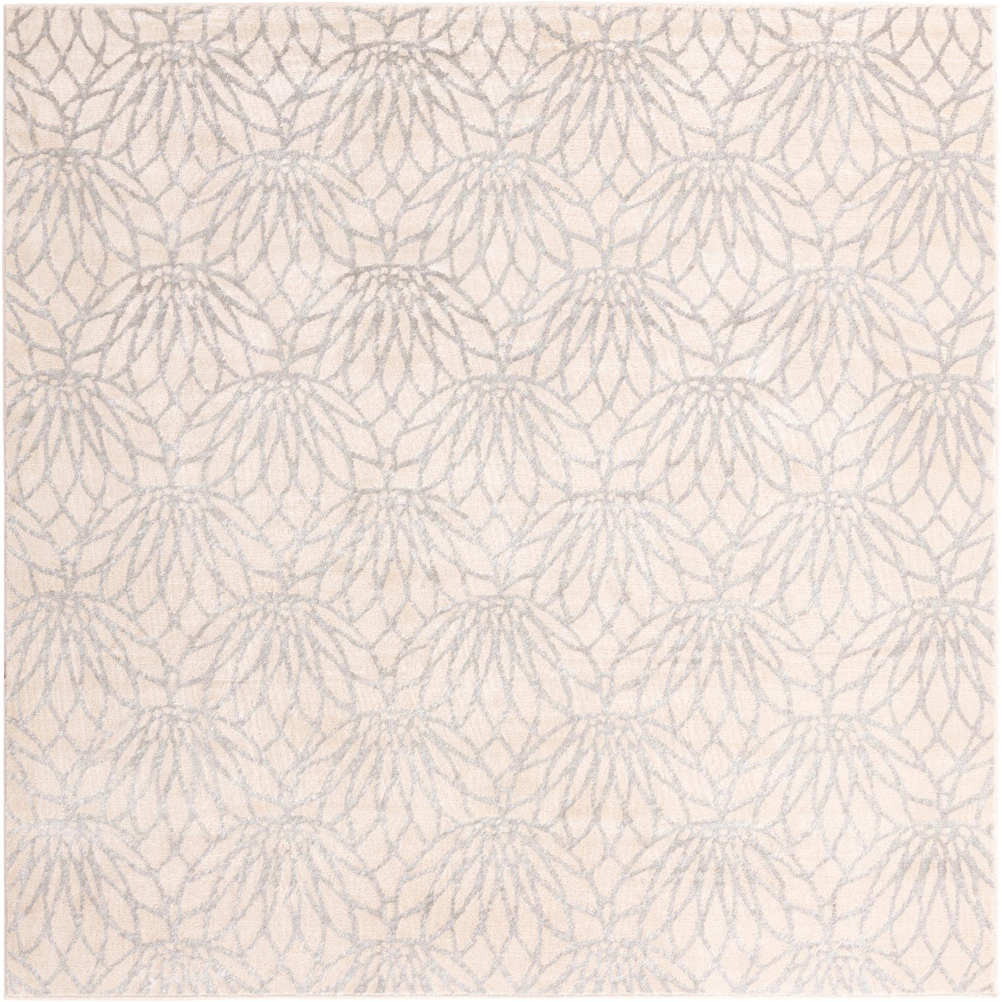 A 7' 10 x 7' 10 square gray and white area rug with a modern floral trellis pattern, featuring a textured pile.