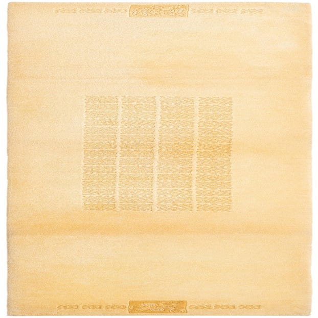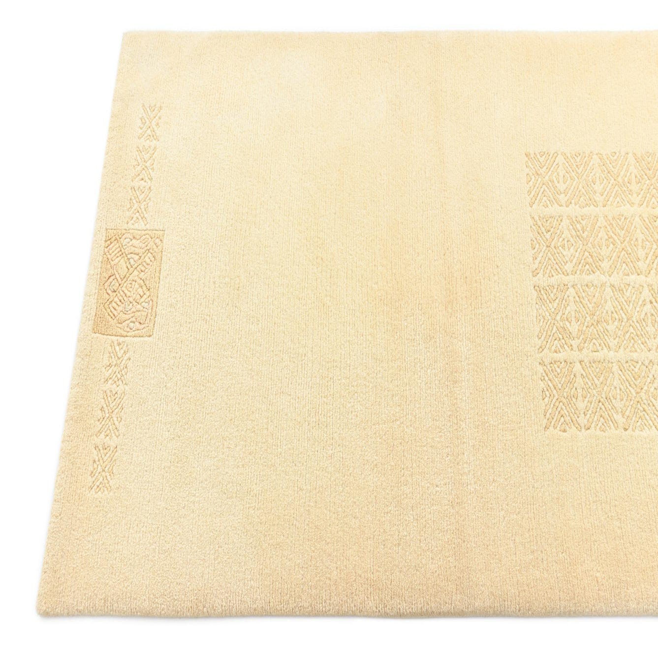 Primary color is Yellow. Colors in this rug include: Yellow, Gold.