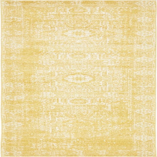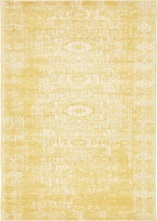 Primary color is Yellow. Colors in this rug include: Yellow, Ivory.