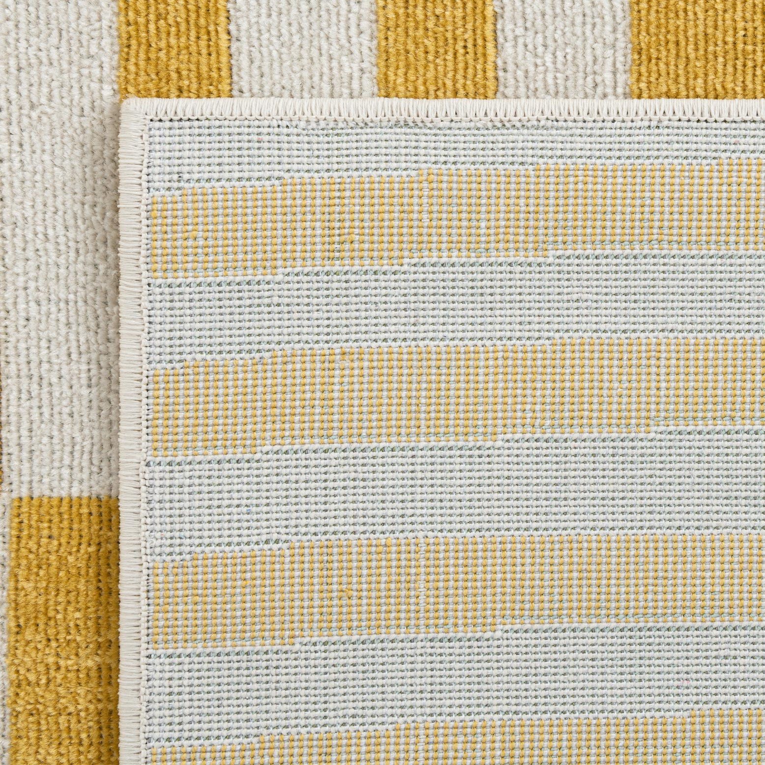 A 10 ft runner rug from the SoHo collection featuring a modern geometric stripe pattern in alternating yellow and off-white horizontal blocks.