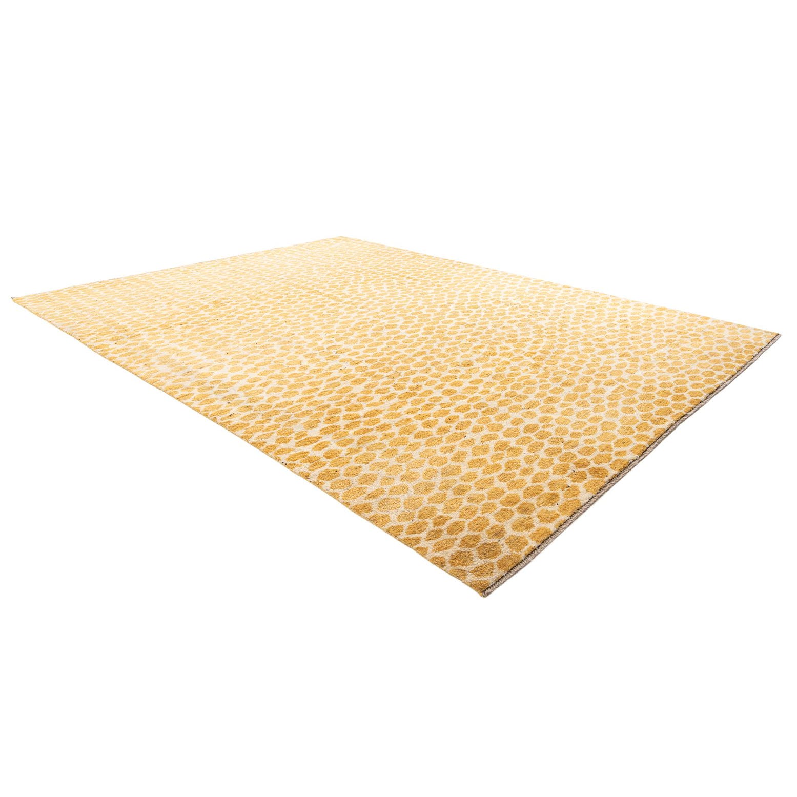 Primary color is Yellow. Colors in this rug include: Yellow, Ivory.