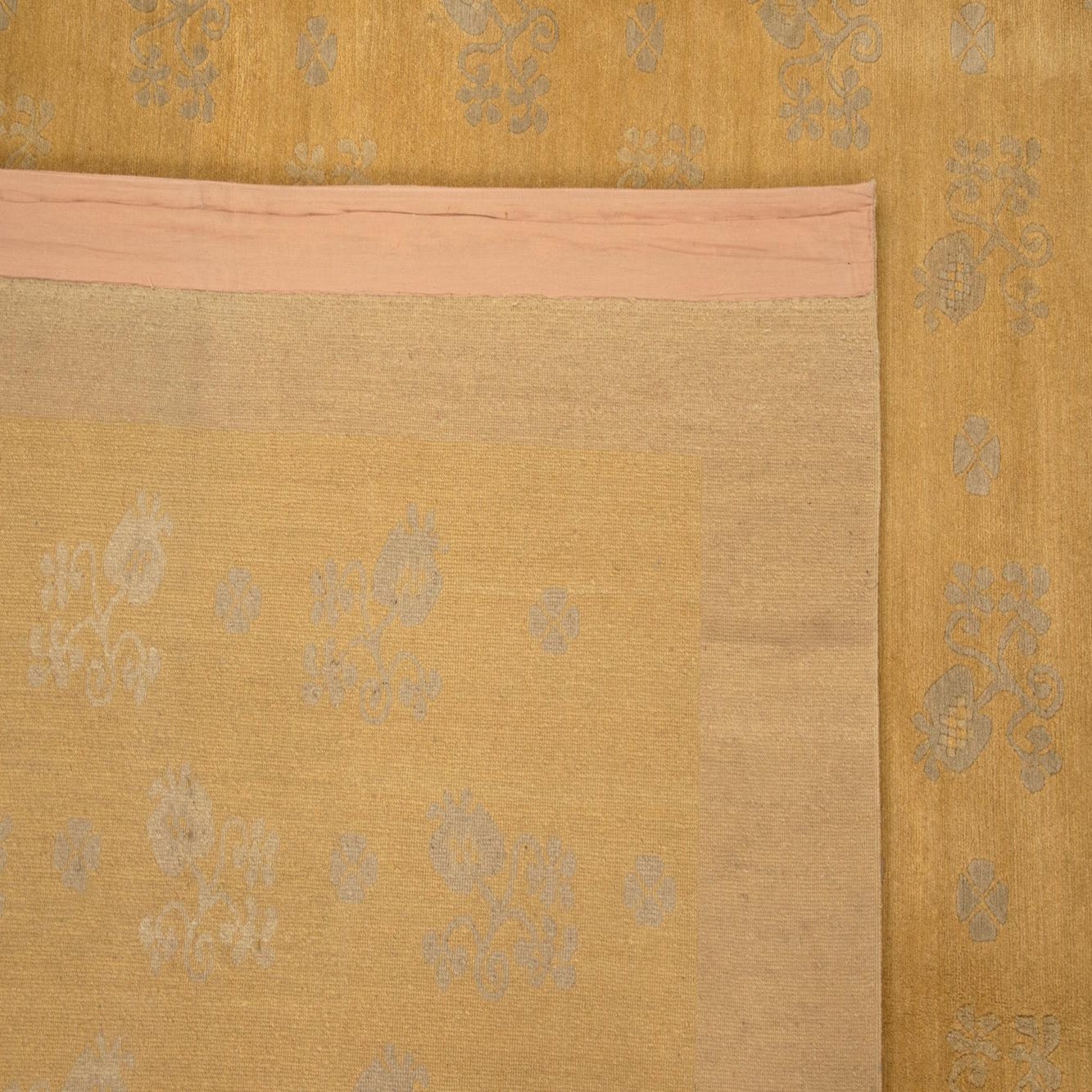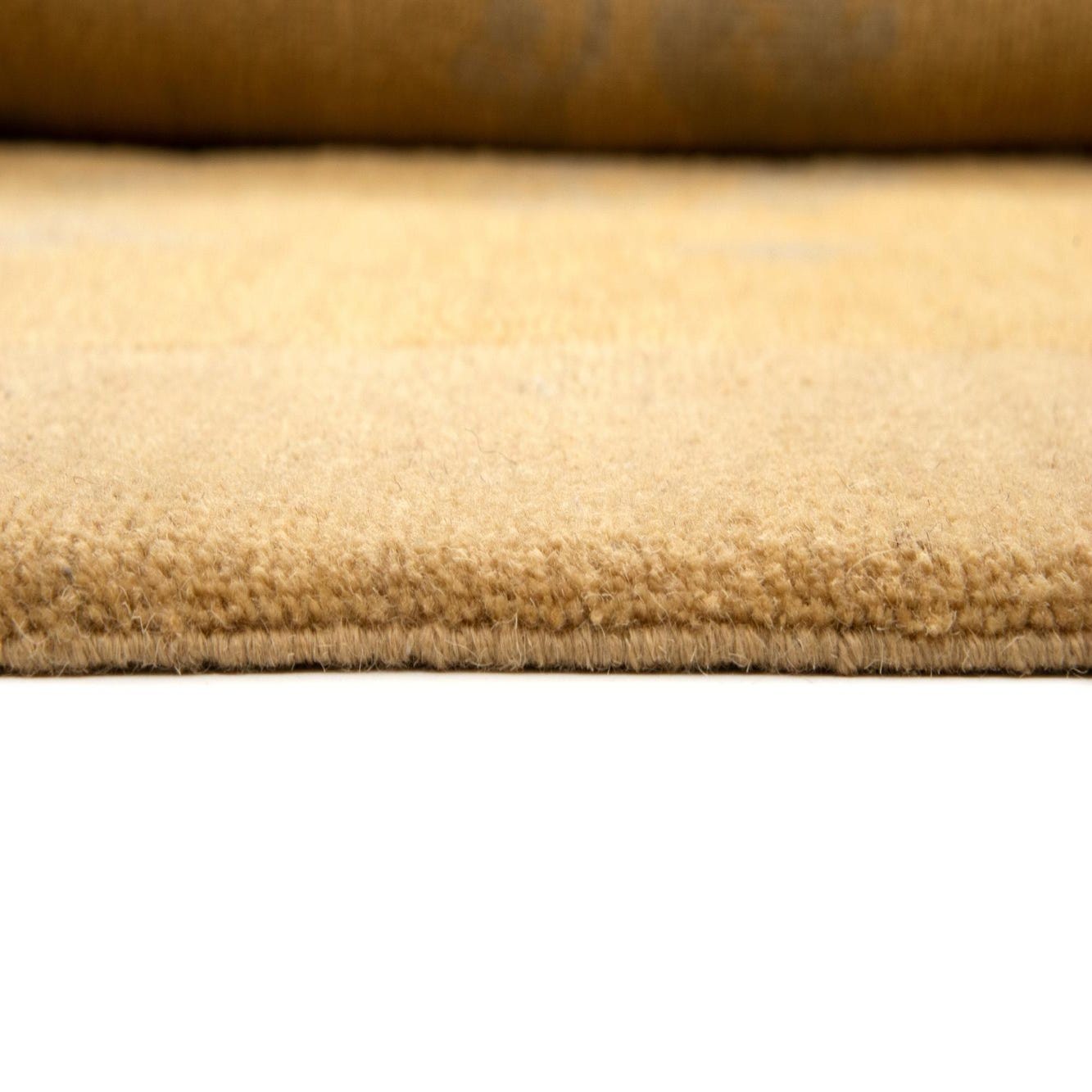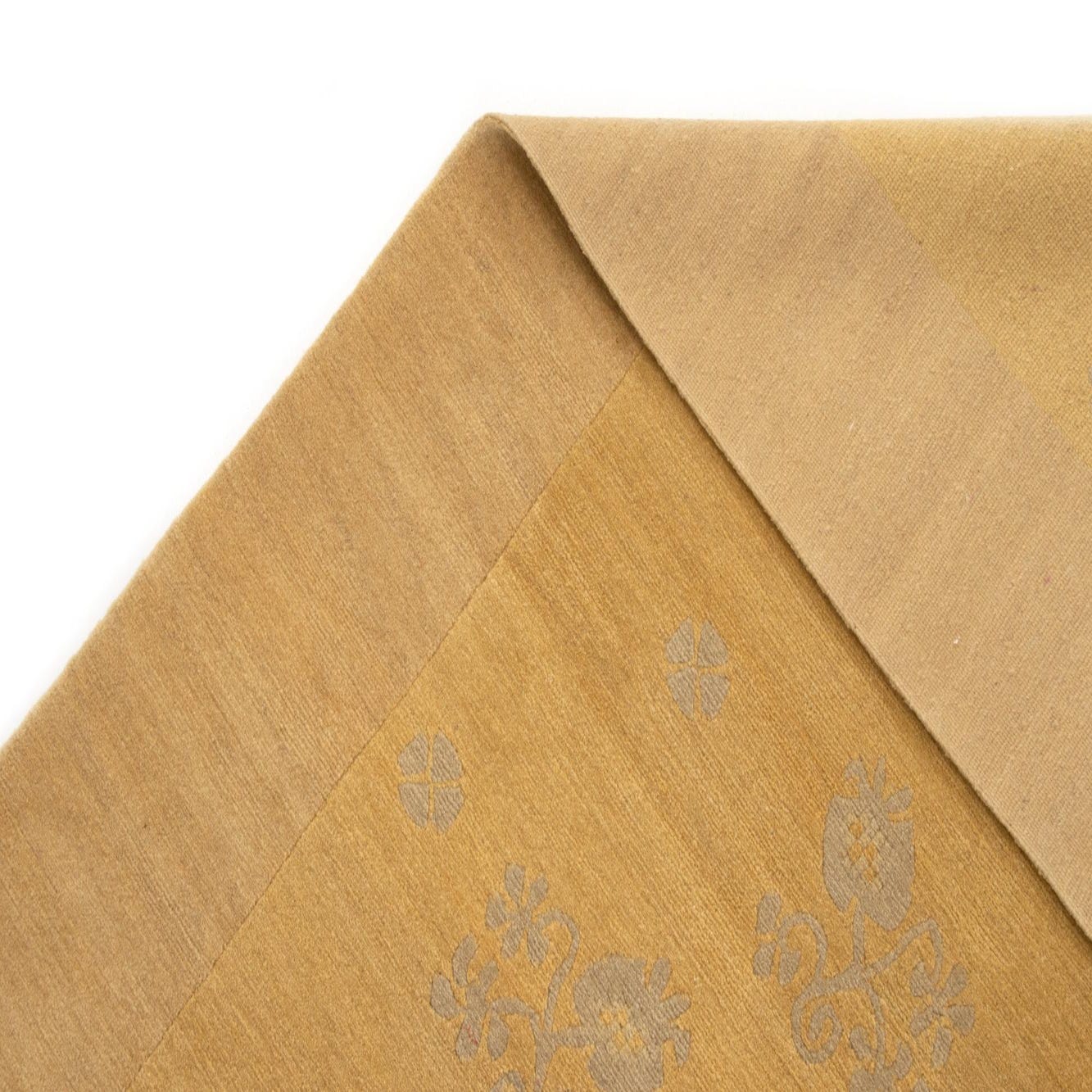 A 10x13 rectangular Odegard Persian wool rug in shades of yellow and gold with a subtle floral pattern and a solid border.