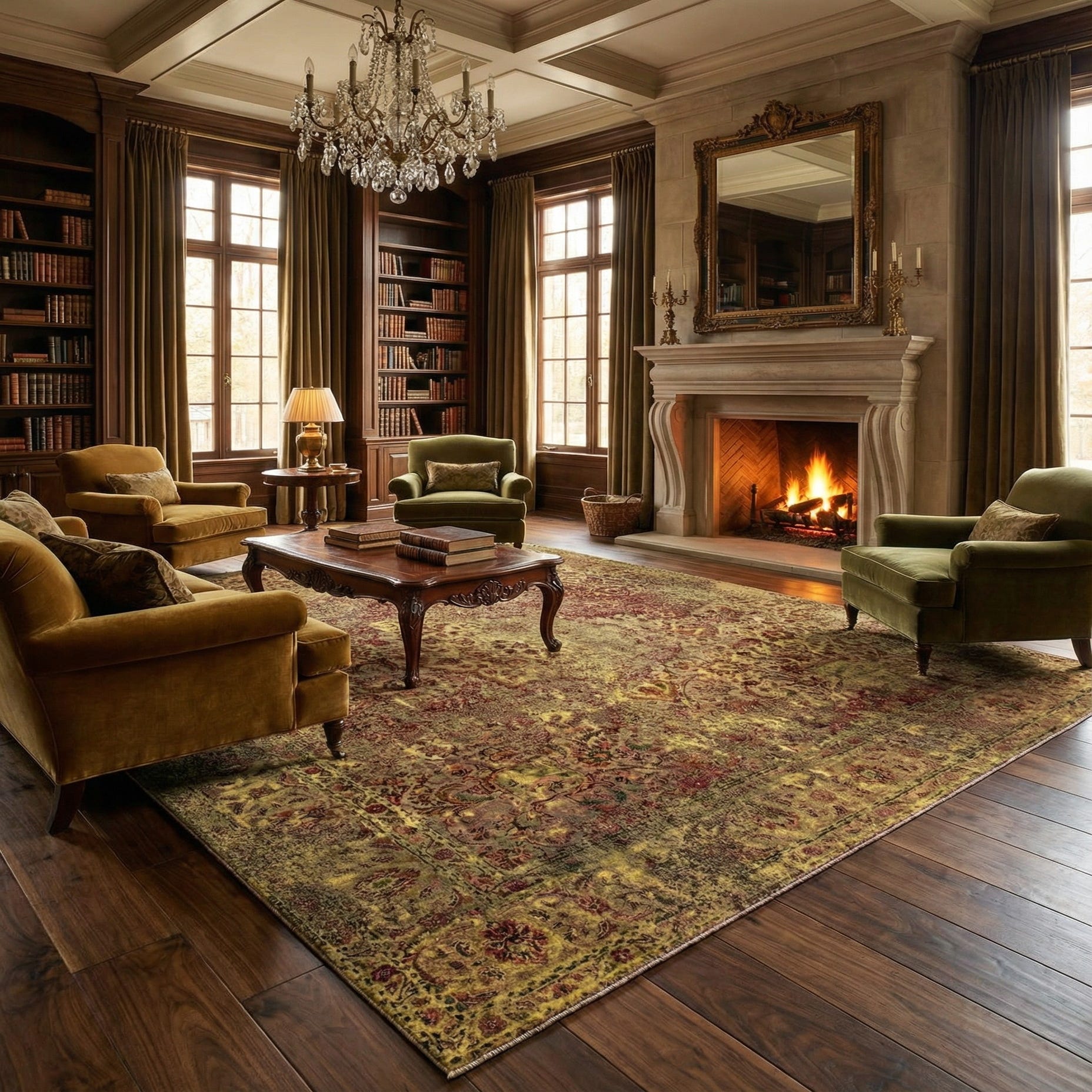 From the Vintage Royal collection, this hand-made 100% wool rug presents a classic aesthetic with a richly detailed pattern that brings both depth and dimension to a space. The 11-foot square rug showcases a prominent yellow background, providing a warm and inviting foundation. Accentuated by red detailing, the traditional motifs are intricate and gracefully aged, offering a sense of history and elegance to the design.