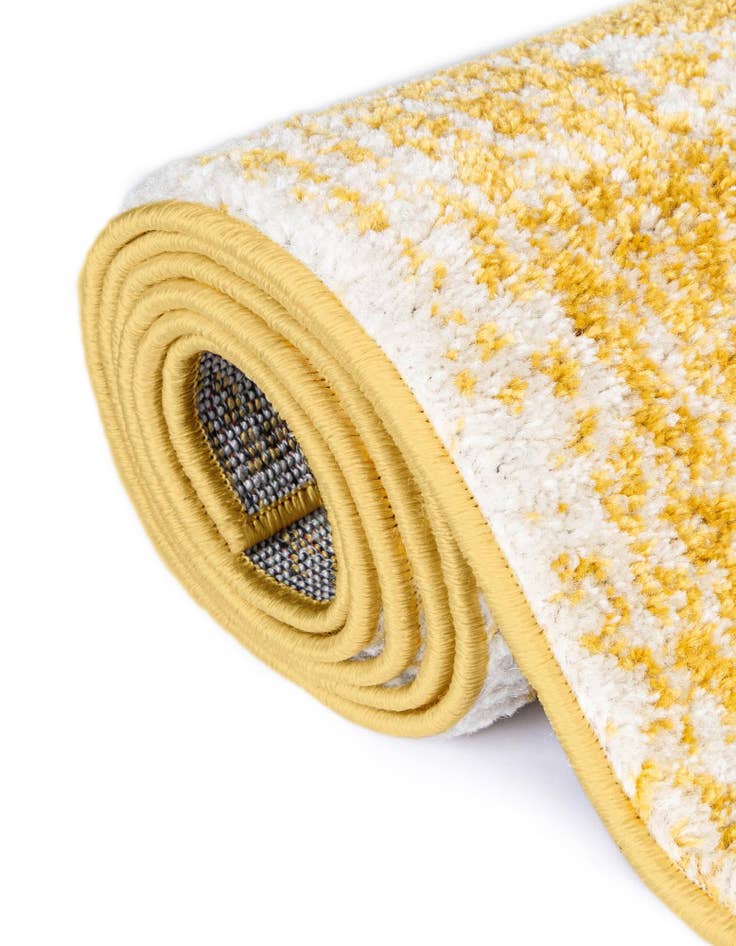 Primary color is Yellow. Colors in this rug include: Yellow, Ivory.