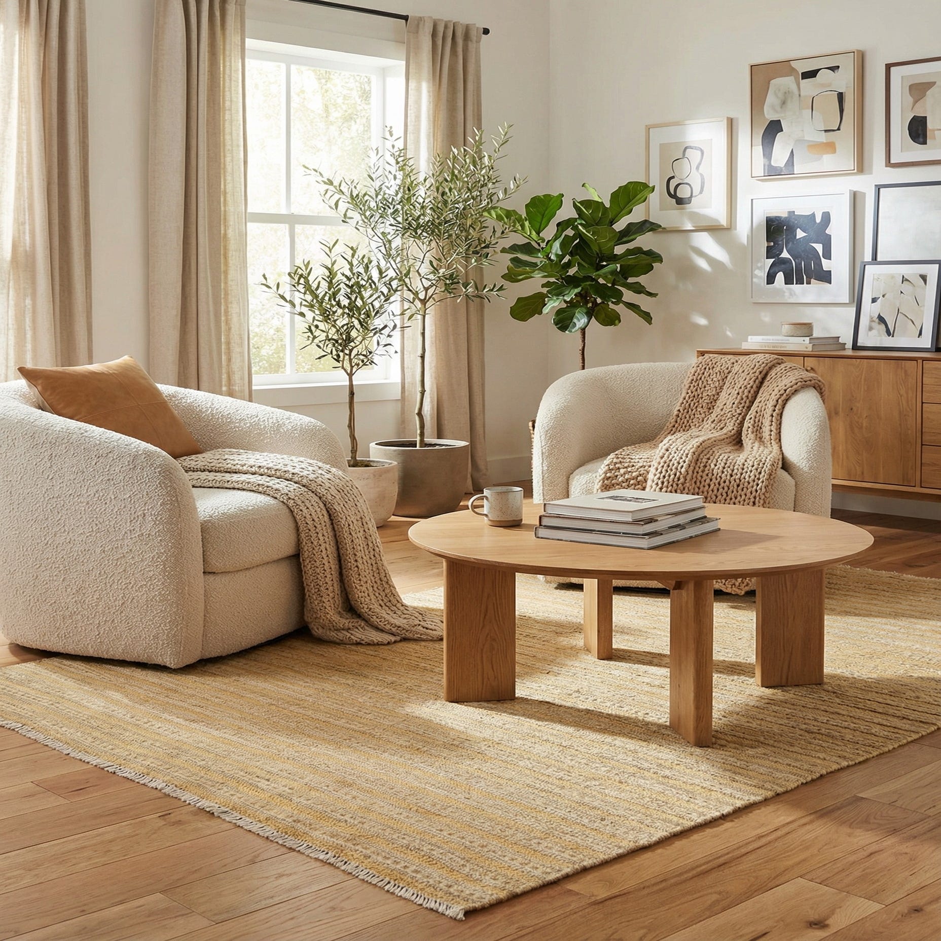 This rug's soothing and natural tones make it a versatile addition to a variety of interior design scenarios. Its simplicity and elegance are well-suited for contemporary and minimalist decor, acting as a grounding element in living rooms, studies, or small seating areas. It can also serve as a complementary piece in a more eclectic setting, where its clean lines and gentle colors can balance rooms with bolder patterns and textures.