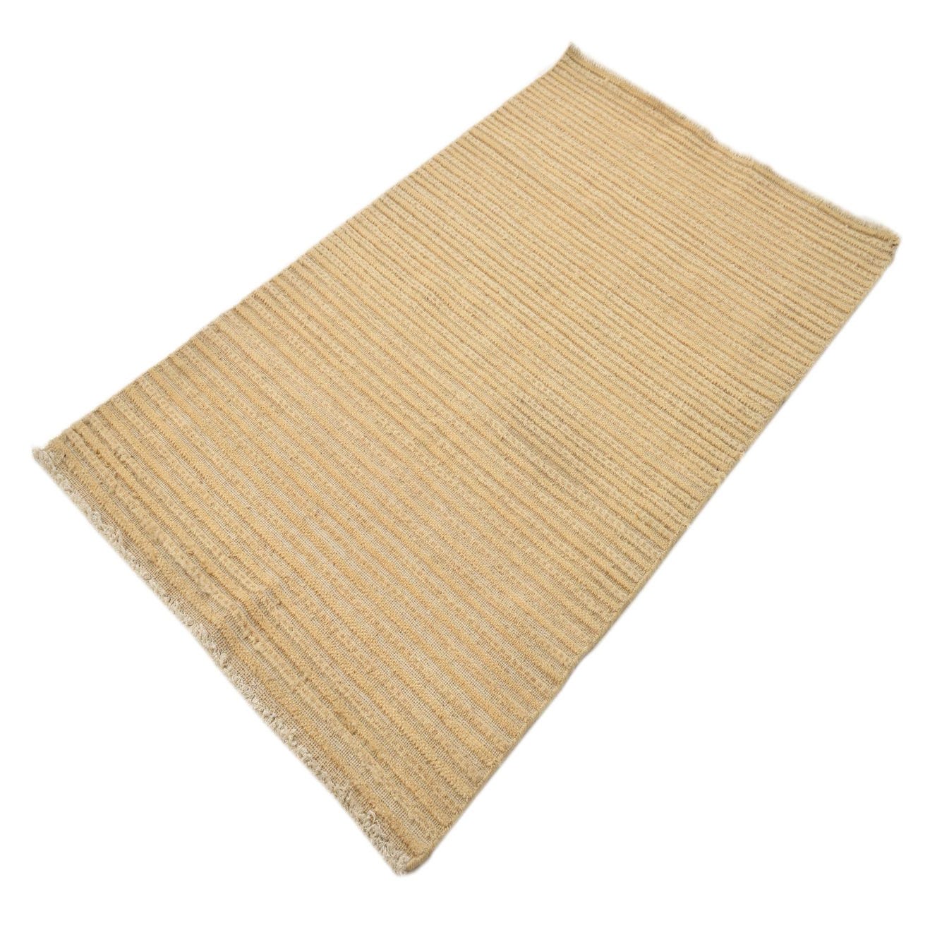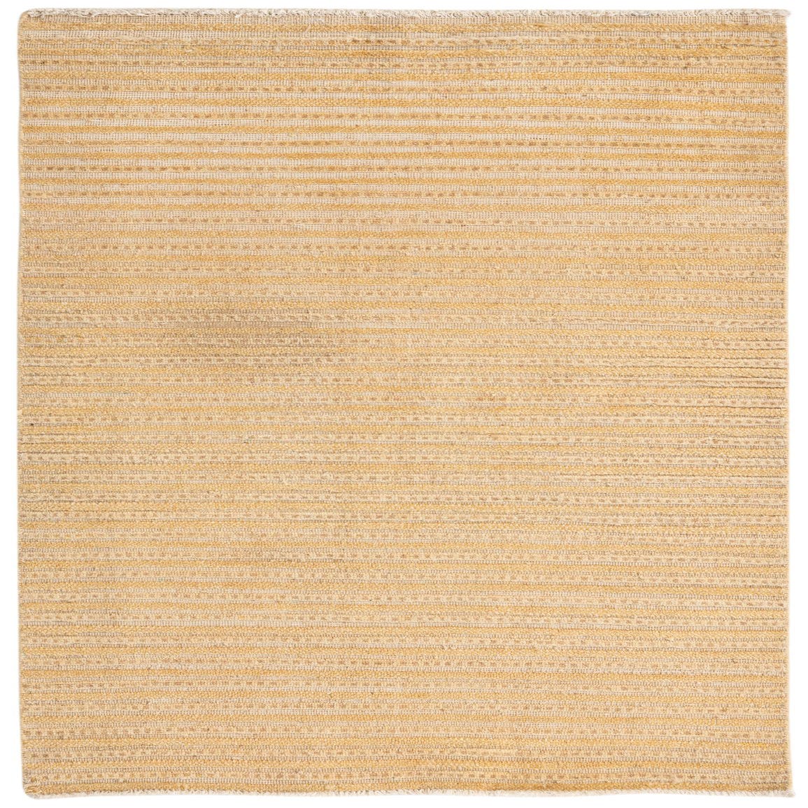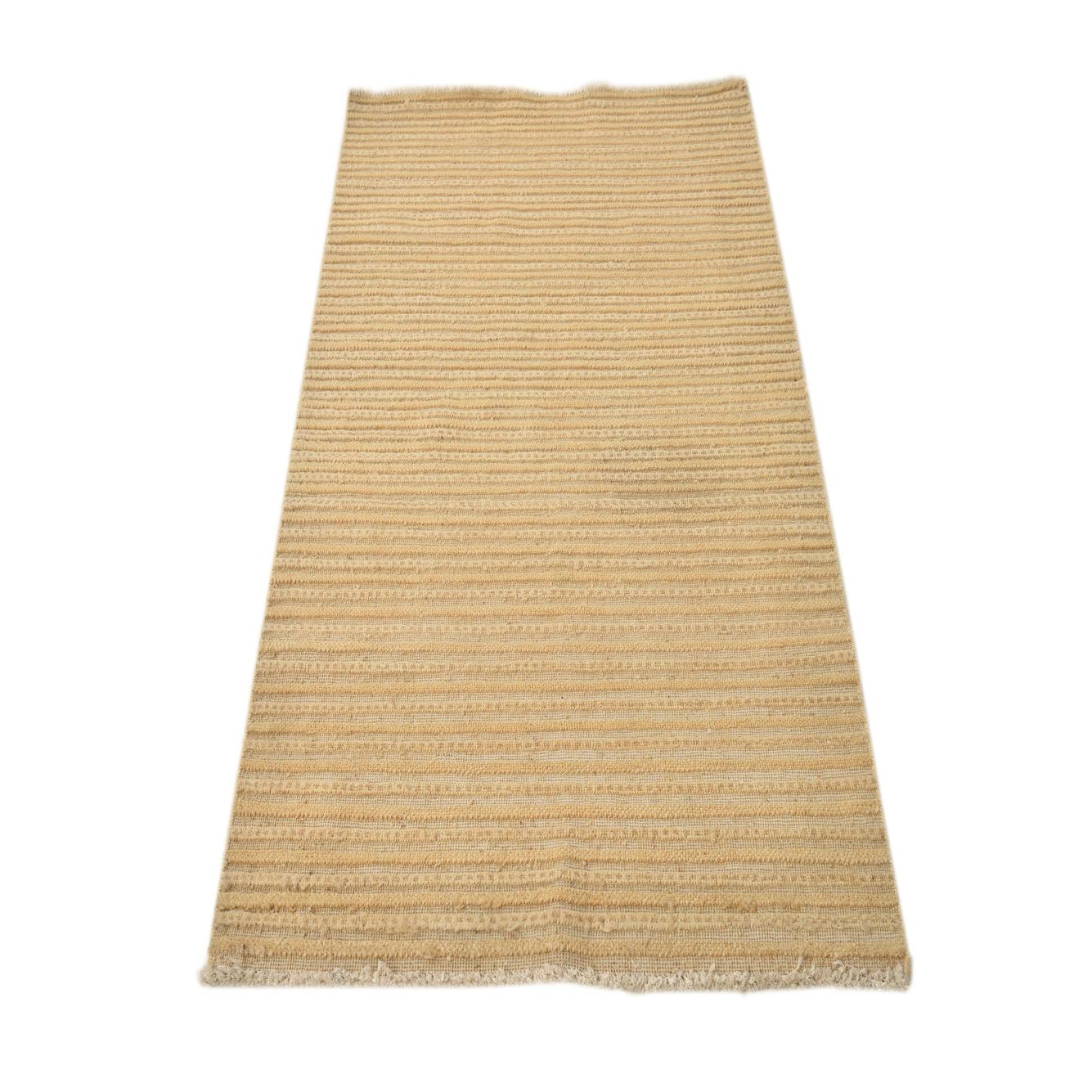 A 3x5 rectangular Modern Ziegler rug featuring horizontal stripes in varying shades of yellow and gold, made from hand-spun wool.