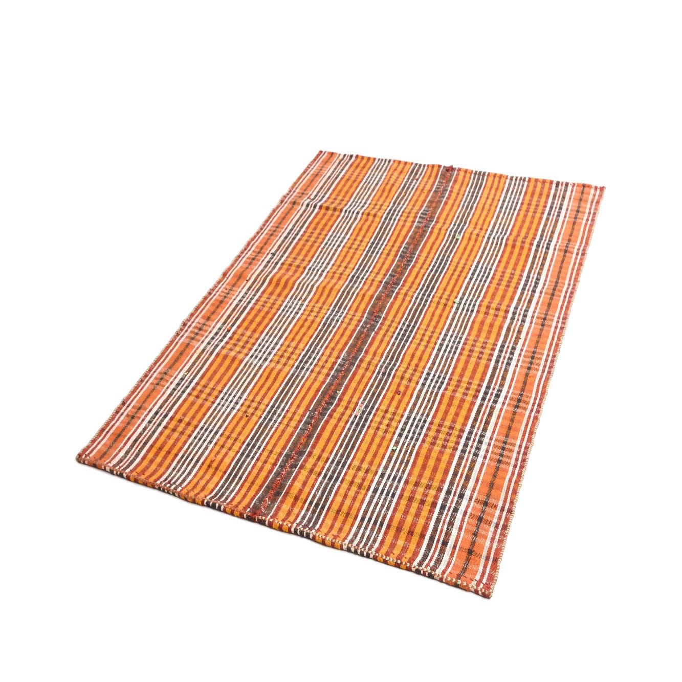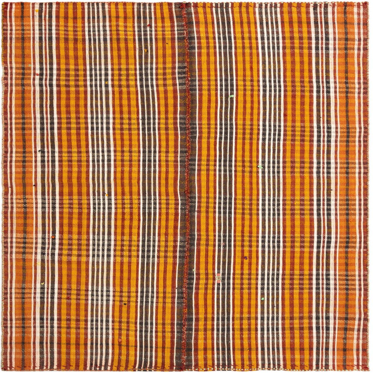 A 4x6 rectangular Jajim rug featuring vertical stripes in varying shades of yellow, gold, brown, black, and white.